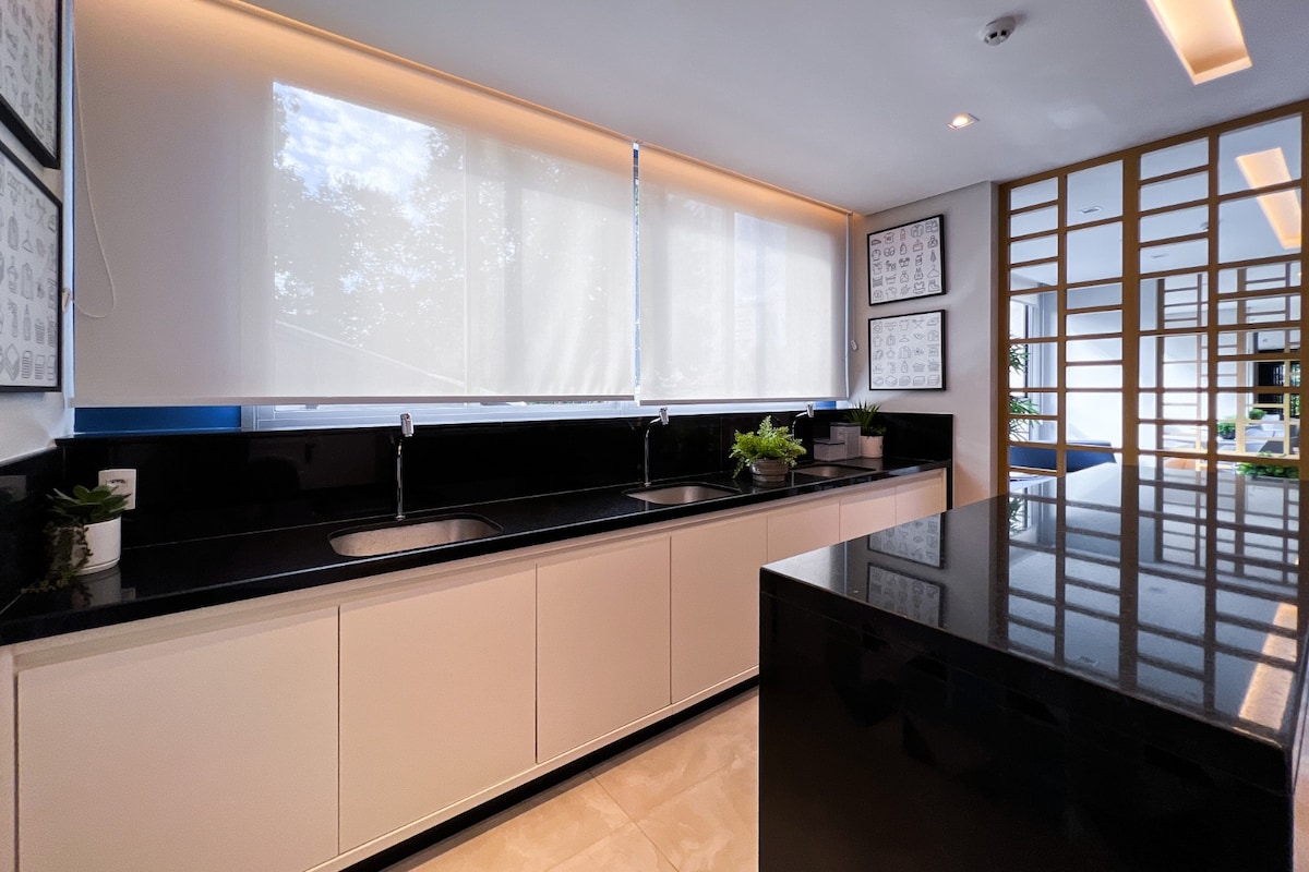 Poznaj centrum miasta, mając do dyspozycji prywatny ogród pod niebem São Paulo. Studio o wyrafinowanym wystroju, z drewnianymi elementami wykonanymi na zamówienie i zintegrowanymi przestrzeniami, które łączą w sobie komfort i funkcjonalność. Znajduje się w nim wygodne łóżko, sofa, miejsce do pracy, w pełni wyposażona kuchnia i klimatyzacja. Największą atrakcją jest prywatny, przestronny i ekskluzywny ogród – idealne miejsce na relaks na świeżym powietrzu, co jest rzadkością w tej okolicy. Centralna lokalizacja, łatwy dostęp do wszystkiego. W centrum miasta, blisko wielokrotnie nagradzanych restauracji, urokliwych kawiarni i kultowych zabytków.