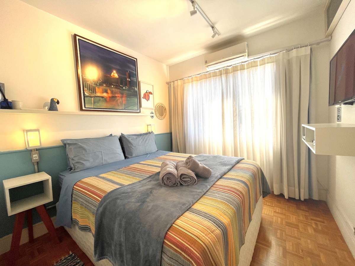 Przestronny, cichy i stylowy apartament w samym sercu Jardins. Idealne dla par i osób podróżujących służbowo, z wyrafinowanym wystrojem, łóżkiem typu king-size, w pełni wyposażoną kuchnią i wygodnym domowym biurem. Ciepłe oświetlenie i bezkonkurencyjna lokalizacja. Pobyt z charakterem, wygodą i praktycznością. Łatwy dostęp do najlepszych restauracji, sklepów i centrów biznesowych w mieście. Zarezerwuj z wyprzedzeniem – nasz kalendarz szybko się zapełnia!