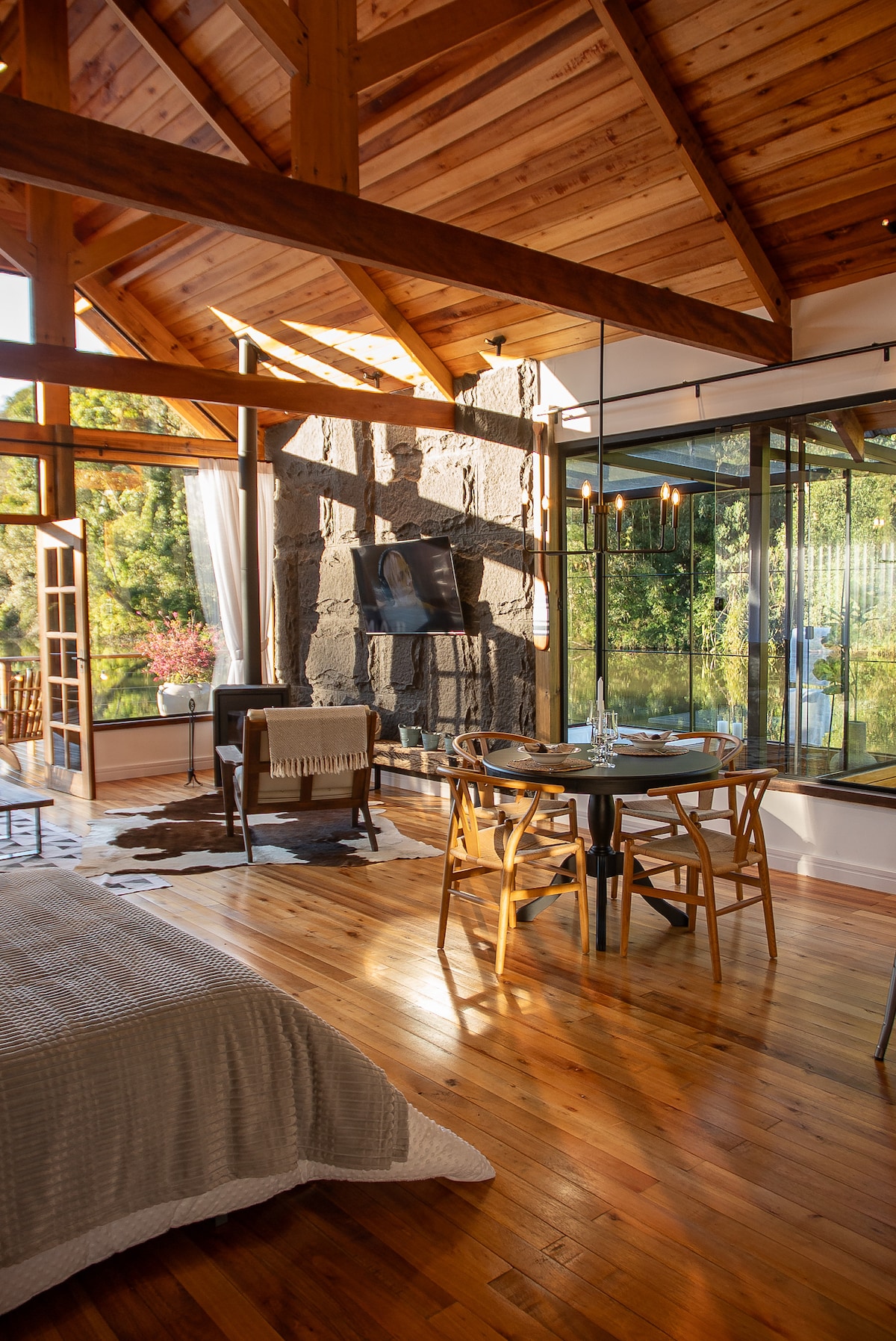 Dzięki swojemu stylowi i urokowi nasza chatka łączy rustykalność drewna z delikatnymi detalami, które tworzą ciepłą i otulającą atmosferę. Tutaj każda chwila staje się przeżyciem: obserwowanie zachodzącego słońca, które odbija się w wodzie, relaks przy dźwiękach natury lub po prostu podziwianie piękna tego miejsca w dobrym towarzystwie. Wyjątkowa przestrzeń dla tych, którzy chcą zwolnić, nawiązać kontakt i przeżyć razem niezapomniane dni.