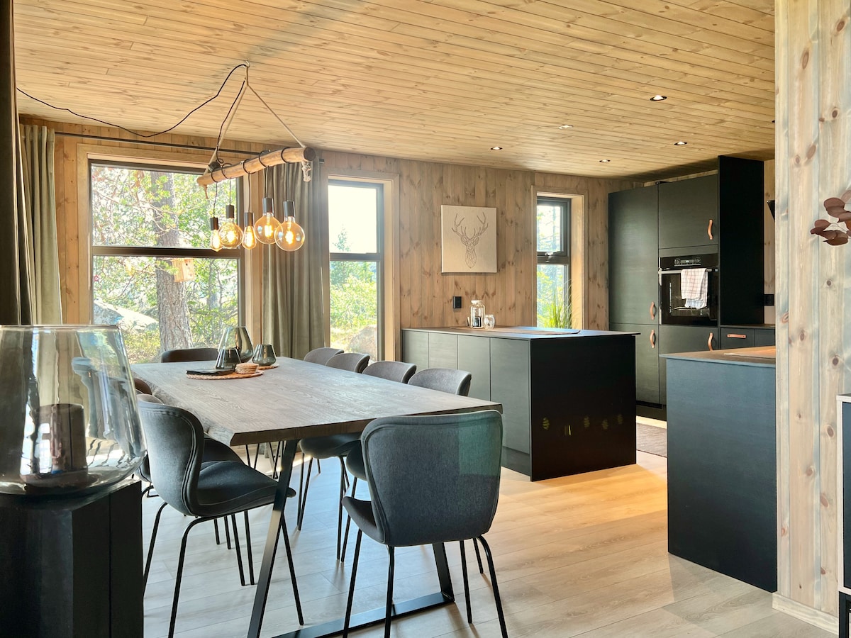 Escape to the mountains, kick back and relax in this calm, stylish space. Whether you're here to hit the cross-country ski trails just steps away in winter, or to explore the scenic hiking paths in summer, our location is unbeatable. Autumn brings its own magic, inviting you to discover an abundance of wild mushrooms and berries. Perfectly positioned in the nearest high-mountain area to Arendal and Grimstad, this cabin offers direct access to embrace nature's beauty, all year long.