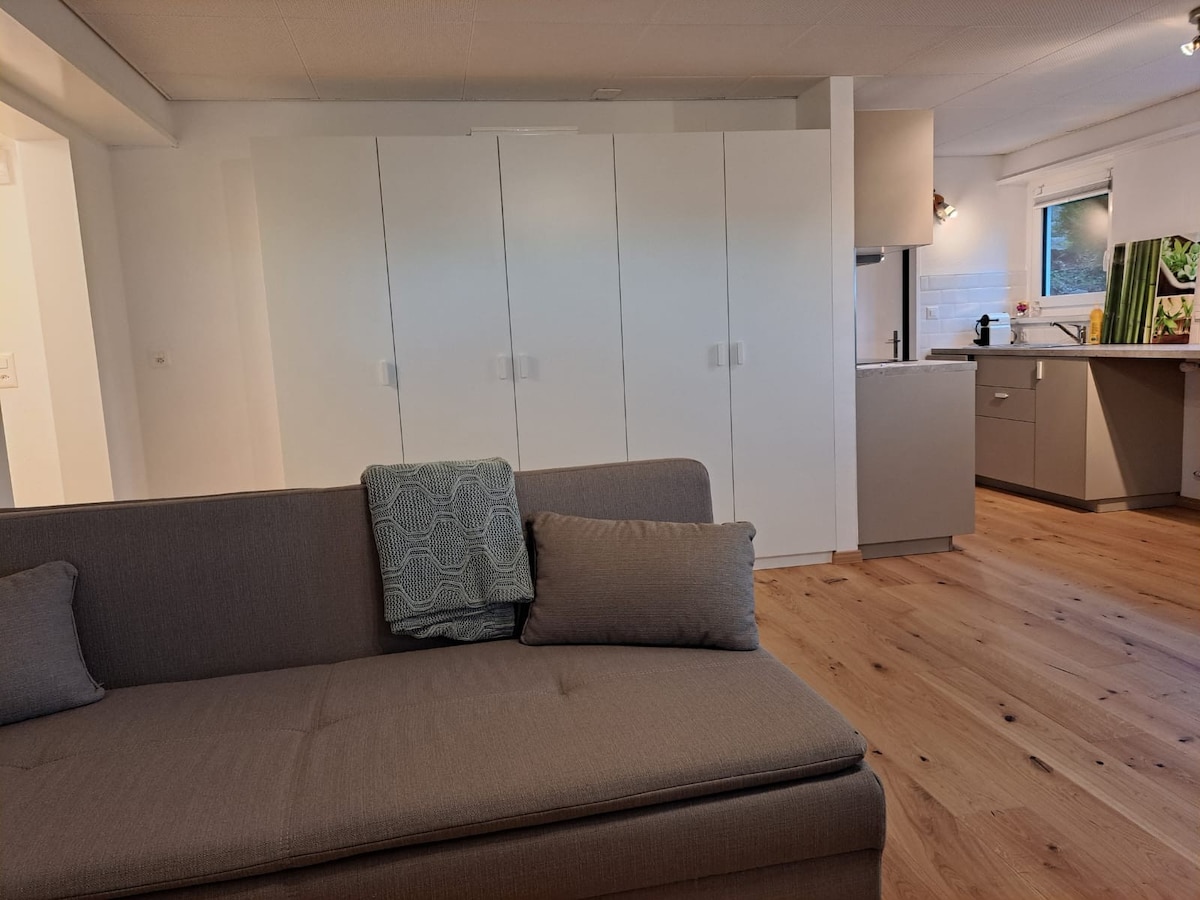 Ten nowoczesny apartament znajduje się w pobliżu jeziora (3 min.) i oferuje czysty, ziemisty wystrój. W pełni wyposażona kuchnia, oddzielna łazienka z prysznicem, przytulny salon/jadalnia oraz wygodne podwójne łóżko zachęcają do pełnego relaksu i dobrej zabawy. Ermatingen to malownicza wioska rybacka z pięknymi trasami spacerowymi, kilkoma restauracjami i ścieżką rowerową bezpośrednio przed domem. Oferujemy bezpieczny parking w naszym garażu na 1 samochód.