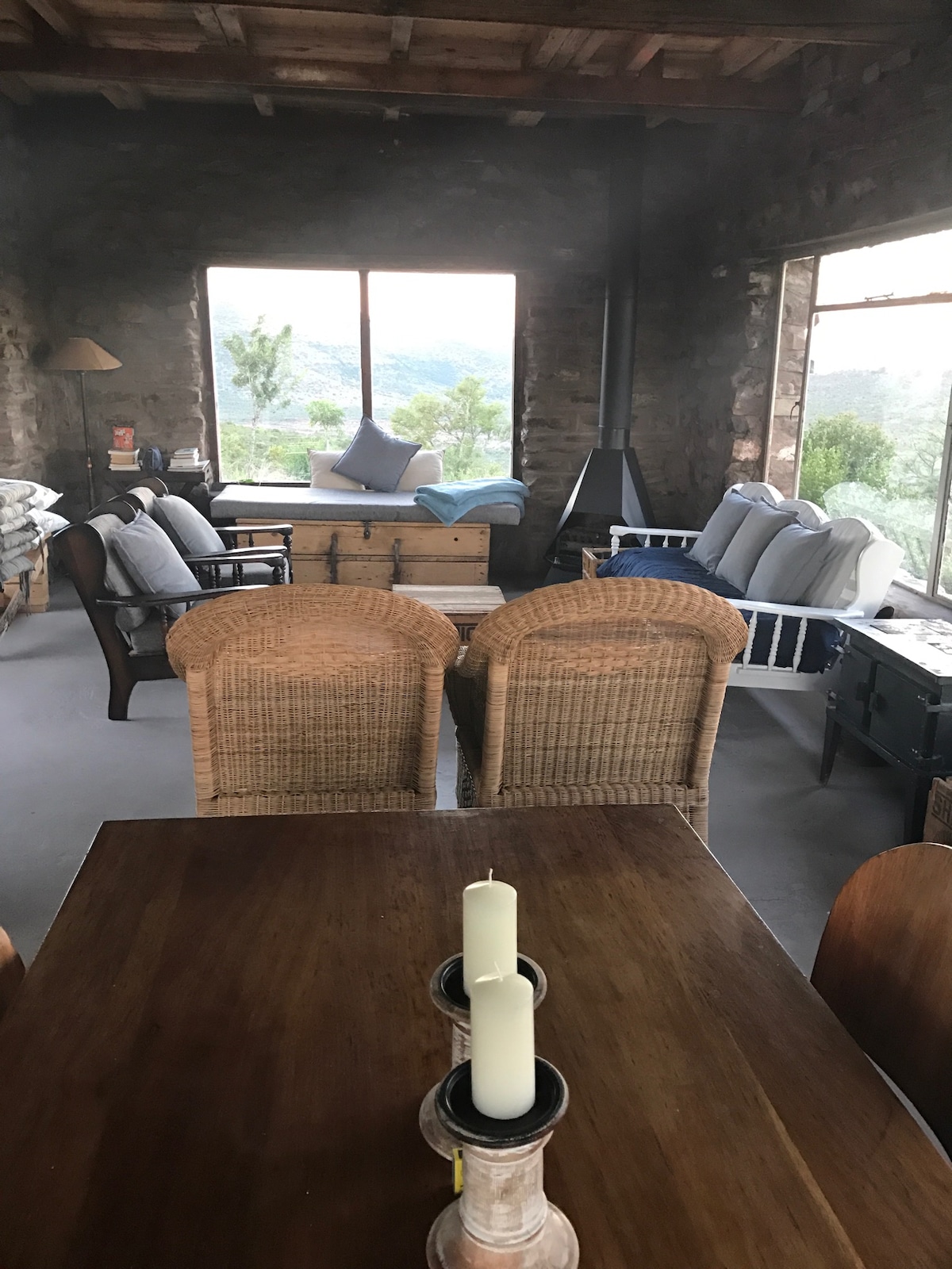 Zrelaksuj się z całą rodziną w tym spokojnym miejscu położonym u podnóża gór Winterberg. Mnóstwo do zrobienia - piesze wędrówki lub „nie tak sprawne”, spacery, łowienie pstrągów, polowanie, jazda na rowerze lub po prostu relaks z dobrą książką! Dostępne są opcje samodzielnego wyżywienia lub catering. W pełni obsługiwane. Prawdziwe gospodarstwo agroturystyczne dla całej rodziny i potworów. Na farmie są owce, bydło, zwierzęta łowne i przyjazne psy domowe. Picnics in the veld a great option or barbeque at the two on the site