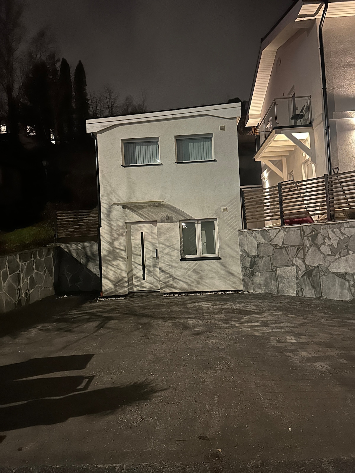 Witamy w naszym nowo wybudowanym małym domu! Ten dom jest idealny dla rodziny z dwójką dzieci lub dla podróżujących ze znajomymi. Sypiasz w oddzielnej sypialni (łóżko 80 + 80 cm) i na poddaszu (łóżko 80 + 80 cm). Jest tu dobrze wyposażona kuchnia i łazienka z prysznicem/toaletą i pralką. Masz dostęp do bezpłatnego internetu i wbudowanych głośników. Dom ma świetne połączenie komunikacy z centrum miasta. Blisko metra Fruängen i przystanek autobusowy tuż za ogrodem. Tylko 15 minut od Stockholmsmässan/Stockholm fair.