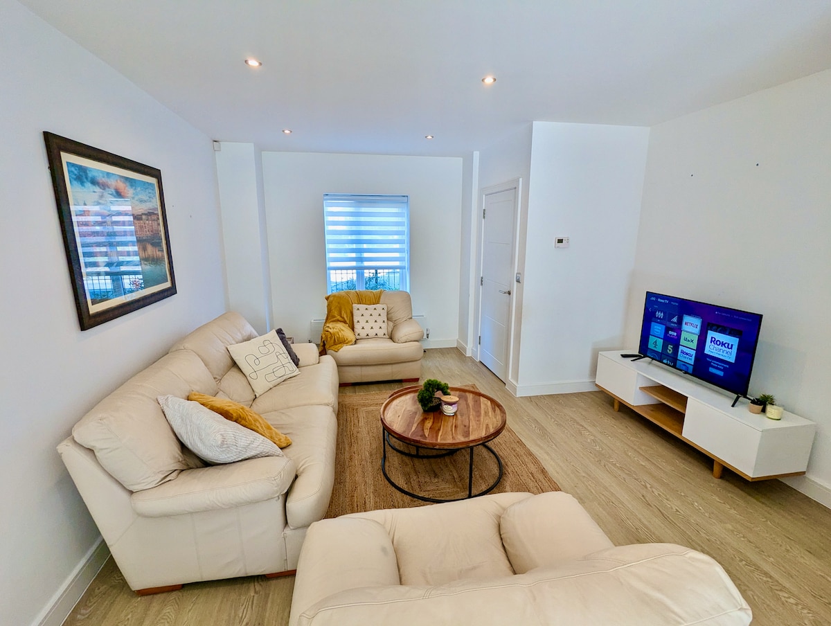 🏡 Ciesz się spokojnym, komfortowym pobytem w naszym nowo wybudowanym prywatnym aneksie, idealnym na wyjazdy służbowe lub weekendowe wypady. Położony w bezpiecznej okolicy, zaledwie 10 minut spacerem od Cheadle High Street z Costa, Starbucks, Tesco i Sainsbury's oraz 15 minut jazdy od lotniska w Manchesterze. Jasny i przytulny pokój z prywatnym wejściem, pełną łazienką, ultraszybkim Wi-Fi, minilodówką, kuchenką mikrofalową, parkingiem i roletami zaciemniającymi zapewniającymi głęboki sen. 10 minut spacerem do przystanku autobusowego na Piccadilly. 💪 Siłownia z basenem i spa 7 minut drogi.