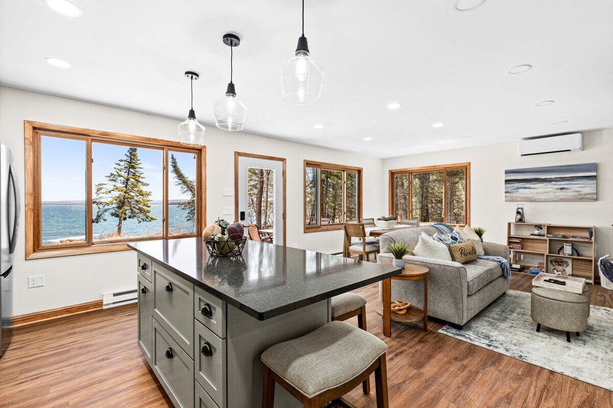 Escape to the tranquil shores of Lake Superior in our charming retreat! Nestled within the serene Brickyard Creek Community, this modern haven offers a perfect blend of rustic elegance and contemporary comforts. Immerse yourself in nature's beauty, unwind on the spacious screened porch, and cozy up by the fireplace. Your peaceful escape awaits. • Screened Porch with Swing Chairs • Access to Beach and Hiking Trails • Smart TV & Streaming • Modern Kitchen • Boat Slip Rental Available