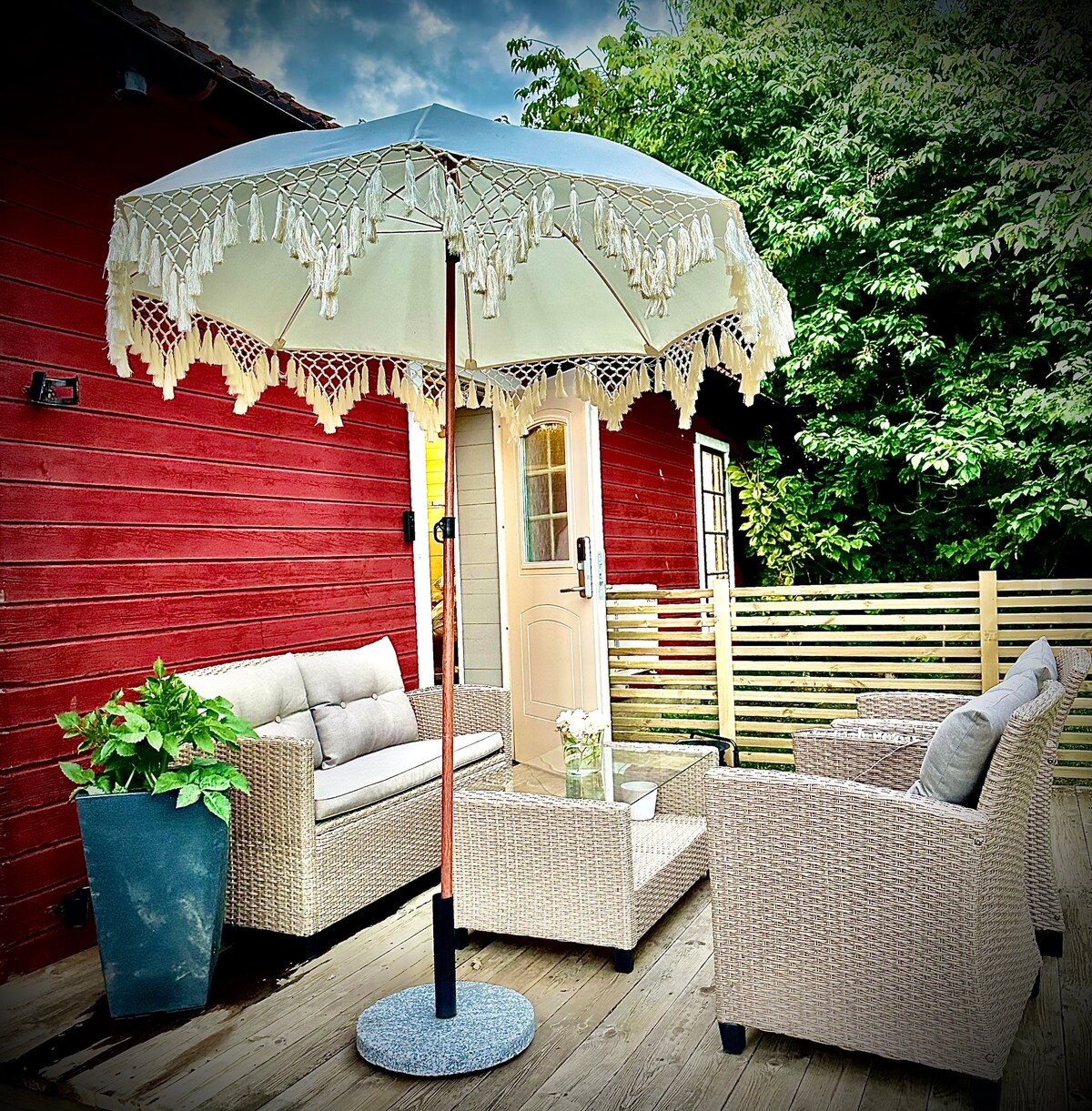 Witamy w spokojnym azylu w jasnym, małym domu z wysokim sufitem. Zbudowany w 2022 roku jako domek gościnny/atelier. Odpowiednie dla osób, które cenią sobie nocleg w świeżym, kompaktowym mieszkaniu, położonym w spokojnej okolicy willowej z dobrymi połączeniami rowerowymi i autobusowymi do centrum Lund.