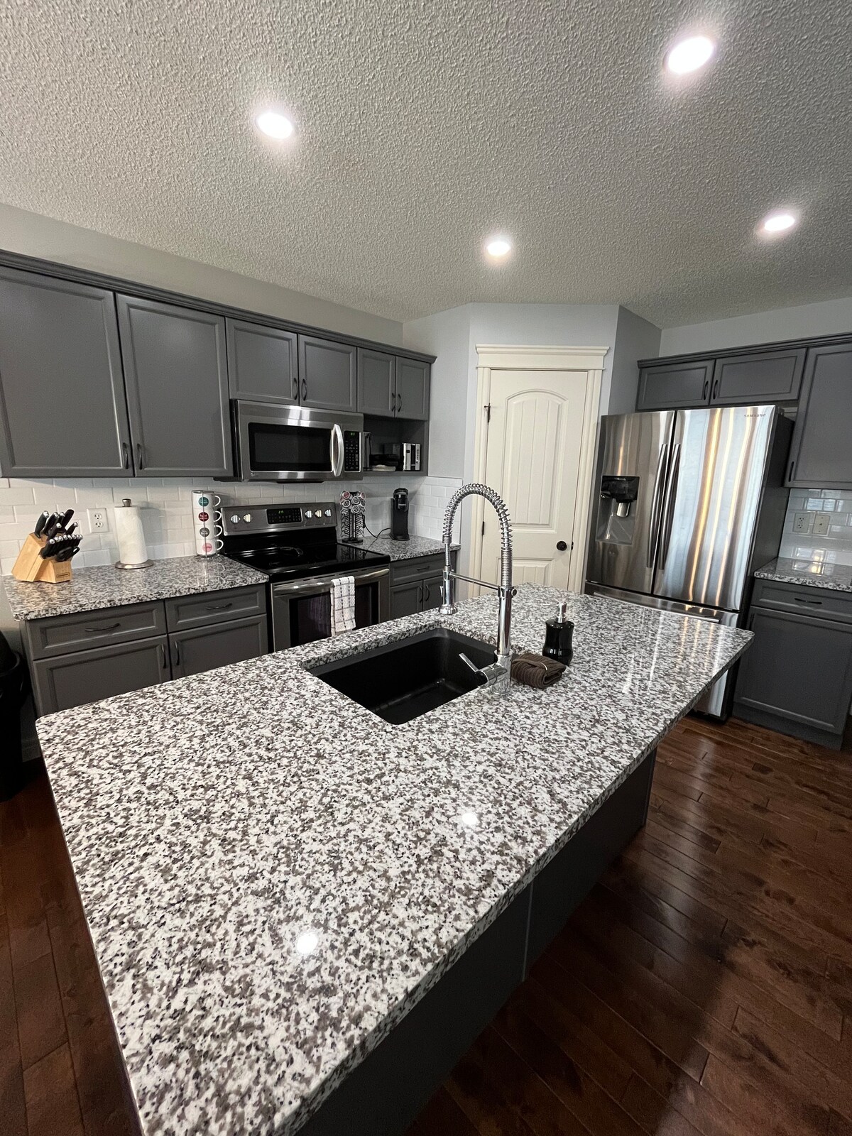 This home is the perfect, one-of-a-kind uniting between a farmhouse themed home and a complete Smarthome. Perfect for groups large and small, King Beds to bunk beds, this home is perfect for your Edmonton stay! 5 minutes from anything in Sherwood Park and 20 minutes from places like the Shaw Conference Centre, Northlands and West Edmonton Mall. This Smart home also has an Echo Device in every room, allowing you to control everything from the music, to the lights to the TV. Simple and fun!
