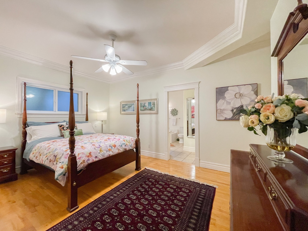 licence445550101 002 Asthma /allergy safe Private guest loft located where a garage usually is and faces the laneway 1 double 2 guests HVAC is seperate with no air flow shared with upper loft Filtered water throughout- No need to buy bottled water! Even the shower water is filtered! Accessable to wheelchairs leather rocker recliners High speed WiFi. 55 inch smart t.v. Microwave,Keureg coffee, small fridge