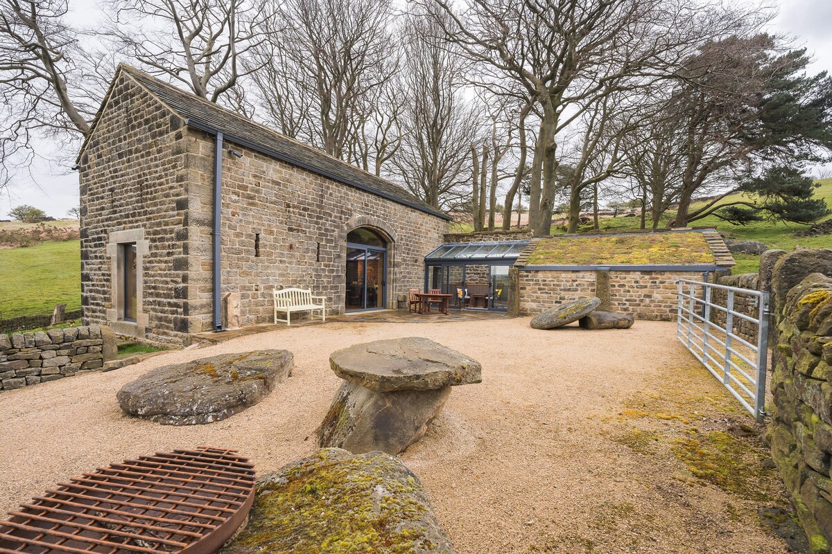 Nowo przebudowany stylowy dom wakacyjny, stworzony z dawnej stajni i siana. Wyjątkowy i zaprojektowany na zamówienie dom wakacyjny w Parku Narodowym Peak District. Podziwiaj wspaniałe krajobrazy z okien i wnętrz w stylu loftu z odsłoniętymi belkami, wysokimi sklepionymi sufitami, nastrojowym oświetleniem oraz otwartym salonem, jadalnią i kuchnią. Ciesz się świeżym powietrzem. Odpoczywaj na luksusowych materacach, wtul się w kołdry puchowe. Zanurz się w wannie na nóżkach lub odśwież się pod prysznicem z deszczownicą.