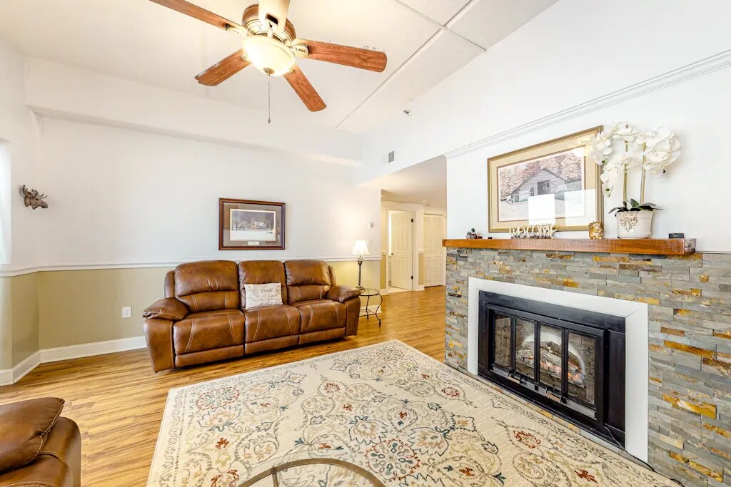 New renovations just completed 2025! Our studio ski condo is directly across from Sugar Mountain Ski and Golf Resort. The perfect winter basecamp! What People Love: ✔ Short walk or drive to Sugar Ski and Golf Resort ✔ Winter slope views ✔ New renovated, modern studio style and furnishings ✔ Cozy remote control gas fireplace ✔ Stone’s throw to grocery, shops and restaurants ✔ King size bed ✔ Mini split A/C & Heat ✔ Washer/Dryer in unit ✔ Relaxing deck across from creek