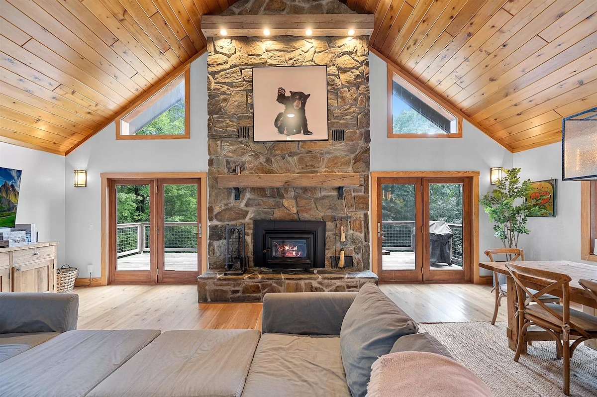Wynajmij cały dom. Duża główna sypialnia z prywatną łazienką i 2 sypialnie, które mogą pomieścić 4 osoby z wspólną pełną łazienką, jeden pokój bonusowy z rozkładaną kanapą. Zmodernizowana kuchnia, kuchenka na propan (wygląda jak piec na drewno), zadaszony ganek, sala gimnastyczna, gry, w pełni wyposażona kuchnia, wanna z hydromasażem (dostępna od Dnia Pamięci do Święta Dziękczynienia), palenisko na świeżym powietrzu, wszystko na 8 akrach. Położony centralnie w stosunku do trzech ośrodków narciarskich, kolarstwa górskiego, turystyki pieszej, kajakarstwa, pływania, czego tylko zapragniesz. Przyjazny dom o każdej porze roku!