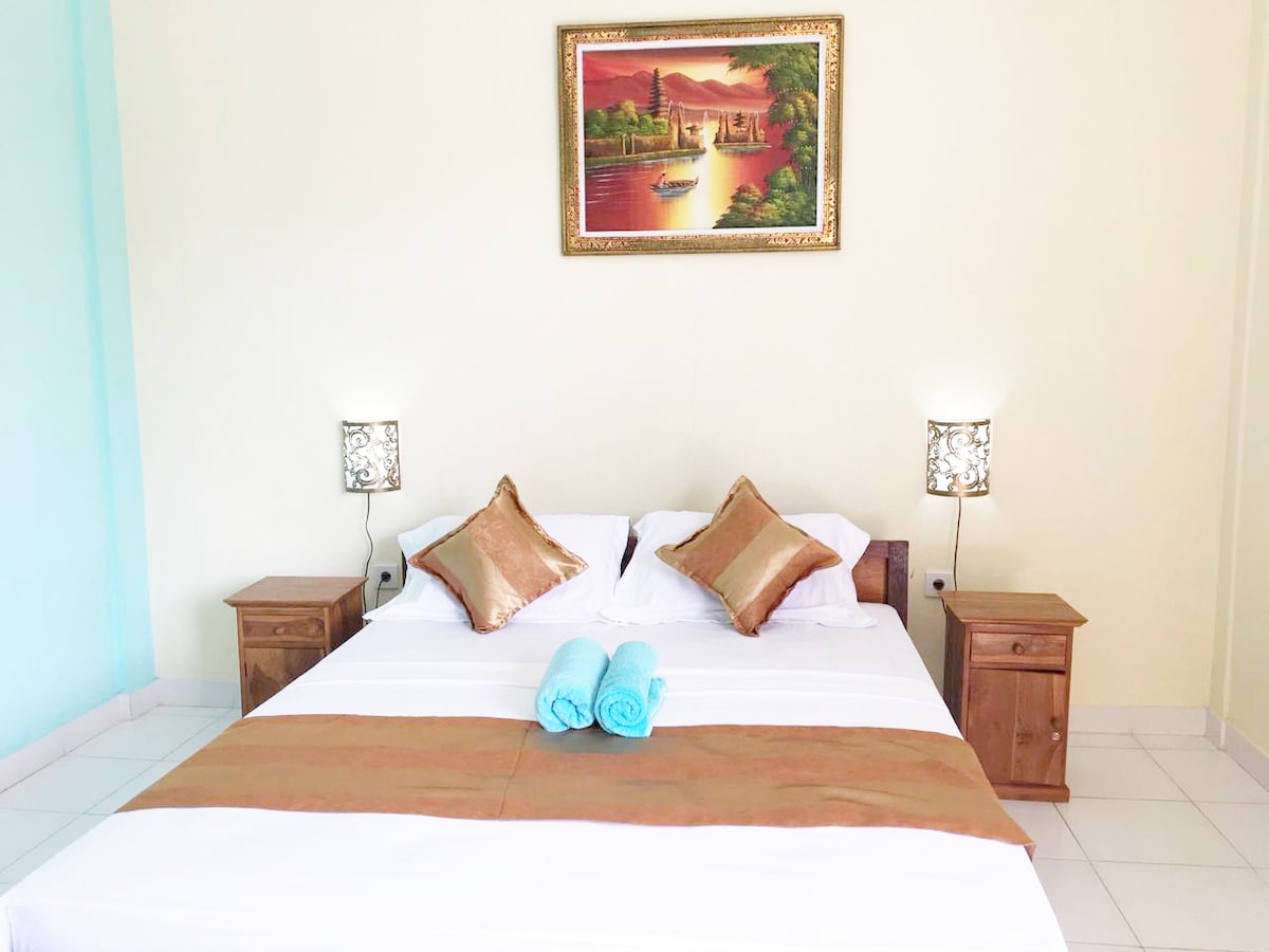 Przestronny i wygodny ulubiony pokój. Strategiczna lokalizacja w centrum miasta, 15 minut spacerem od lotniska Ngurah Rai, w pobliżu plaż, lokalnej i zachodniej kuchni, centrum handlowego Lippo Mall, Discovery Mall, bankomatu, kościoła, Waterboom, targu sztuki itp. Pamiętaj, że zameldowanie trwa tylko do 23:00. Od lutego 2025 roku przepraszamy, przyjmuj tylko gości, którzy mogą zameldować się przed 23:00. Dziękujemy
