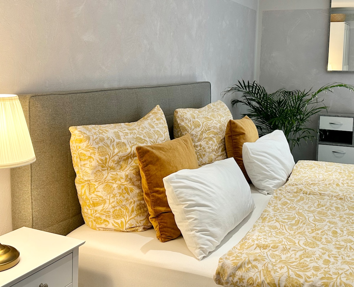 Witamy w Bad Soden u bram Frankfurtu! Mieszkanie znajduje się na parterze naszego domu, ma 45 m² powierzchni mieszkalnej, własne wejście i wszystko, czego potrzebujesz, aby przyjemnie spędzić czas: ~Podwójne łóżko typu king size 180x200cm ~Szybkie Wi-Fi ~Smart TV ~Kawa Nespresso ~Ogrzewanie podłogowe ~Parking wliczony w cenę ~duża kuchnia Połączenie salonu i sypialni zapewnia dużą elastyczność: rozsiądź się wygodnie i zrelaksuj w tym cichym, stylowym miejscu.