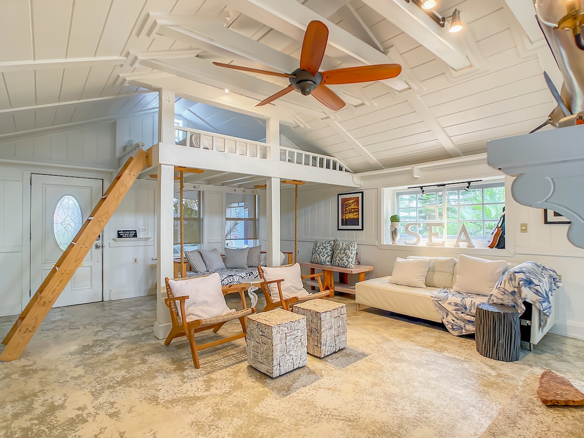 Ta historyczna oaza artystów położona jest wzdłuż nieskazitelnego odcinka półprywatnej plaży, oferując absolutnie wyjątkową lokalizację nad samym morzem. Ten wyjątkowy dom jest podzielony na 3 oddzielne piętra, gdzie będziesz wynajmować całe górne piętro penthouse. Wewnątrz znajduje się otwarty salon z luksusowym łóżkiem typu king size oraz balkonem z przodu i z tyłu. Ciesz się nieprzerwanymi widokami na ocean z panoramicznych okien, relaksując się i obserwując delfiny bawiące się w falach i podziwiając zachwycające zachody słońca na niebie.