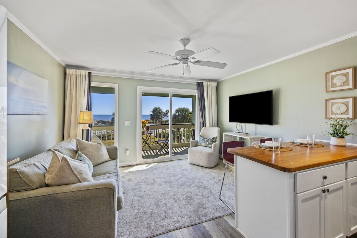 ROOF CONSTRUCTION Oct 20, 2025 - Feb 13, 2026. THERE WILL BE SOME NOISE AND CONSTRUCTION VEHICLES WEEKDAYS 7:30 AM - 6PM and SAT 9AM - 4PM. Beautiful, 1 B/1B unit with stunning views of the ocean and IOP beach. Enjoy your piece of paradise in this oceanfront unit with direct access to the beach, private pier, and pool. Relax with stunning views from the living room and balcony, just steps from the beach. Sleeps 5 (up to 4 adults & 1 child) with 1 Q bed, 1 Q sofa bed, and 1 hallway bunk.