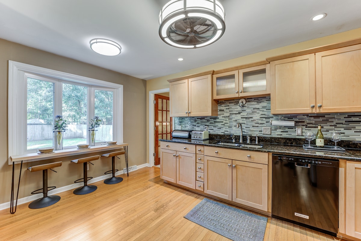 Luksusowy, w pełni zmodernizowany dom z elementami marynistycznymi; położony na ślepej ulicy w bezpiecznej i cichej dzielnicy. ✔ Dogodne zakupy, restauracje i lokalne atrakcje W pełni✔ zaopatrzona kuchnia ✔ Błyskawiczne Wi-Fi ✔ Taras z żaglowym zacienieniem i meblami tarasowymi ✔ Jasny, przestronny, otwarty plan piętra ✔ Ogrodzone podwórko z tyłu ✔ Gry dla każdego ✔ Pralka i suszarka na miejscu ✔ Grill Telewizory ✔ Smart TV w salonie i wszystkich sypialniach ✔ Pac N Play z pościelą Krzesełko ✔ 6 w 1 ✔ Wydzielone miejsce do pracy