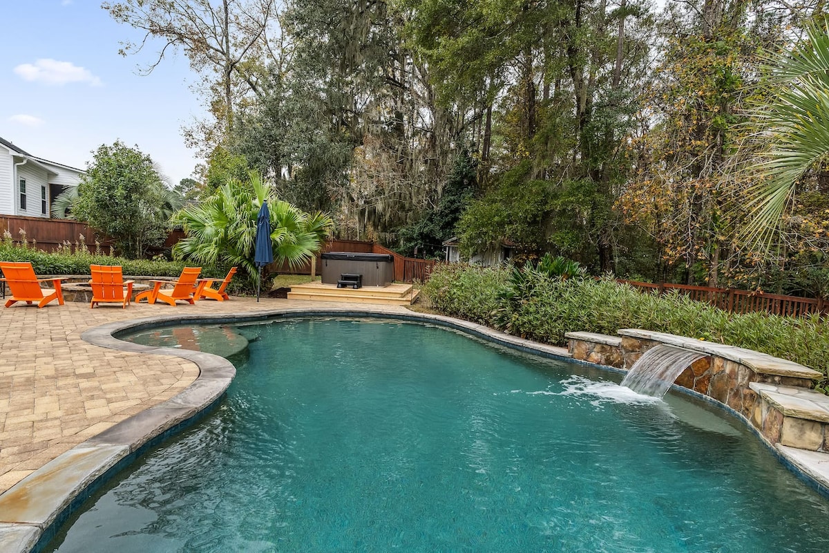 Welcome to Share-in Dipity, this stylish and relaxing home has everything you need to de-stress and enjoy Charleston. This 4/2.5 home features thoughtful design touches, an incredible outdoor area with a large patio and pool, close proximity to grocery stores/shopping, all set in the walkable and quiet neighborhood of Kings Grant. Though you may be tempted to turn your trip into a staycation, we are only 25 minutes from downtown and 35 minutes to beaches like Sullivans Island.