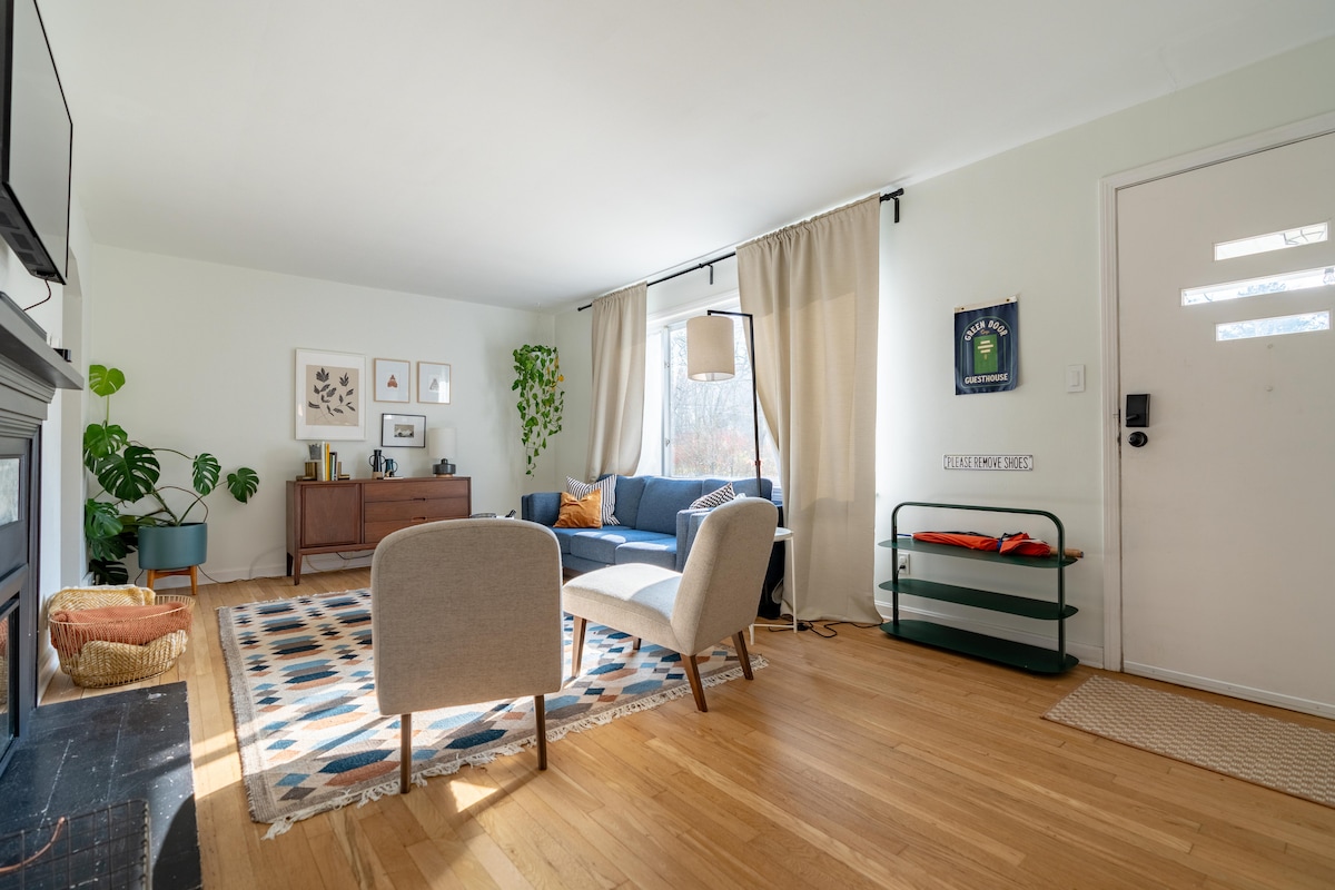 Witamy w naszym przestronnym domu w stylu kolonialnym na cichej i bezpiecznej ulicy w pobliżu modnej dzielnicy Highland Square. Dostęp do parku narodowego, lokalnych restauracji, miejsc koncertowych i muzeów sprawia, że ten pokój jest idealną bazą wypadową do zwiedzania północno-wschodniego Ohio. My i nasze 2 koty mamy nadzieję, że Cię poznamy! Twój duży prywatny apartament zawiera: Prywatna łazienka z toaletą Regulowane łóżko typu Queen Rozkładana sofa typu Queen Wybór poduszek Barek kawowy + stół Smart-TV Wi-Fi Miejsce postojowe w garażu Ładowarka uniwersalna Lustro Lampa Wentylatory Suszarka do włosów Żelazko