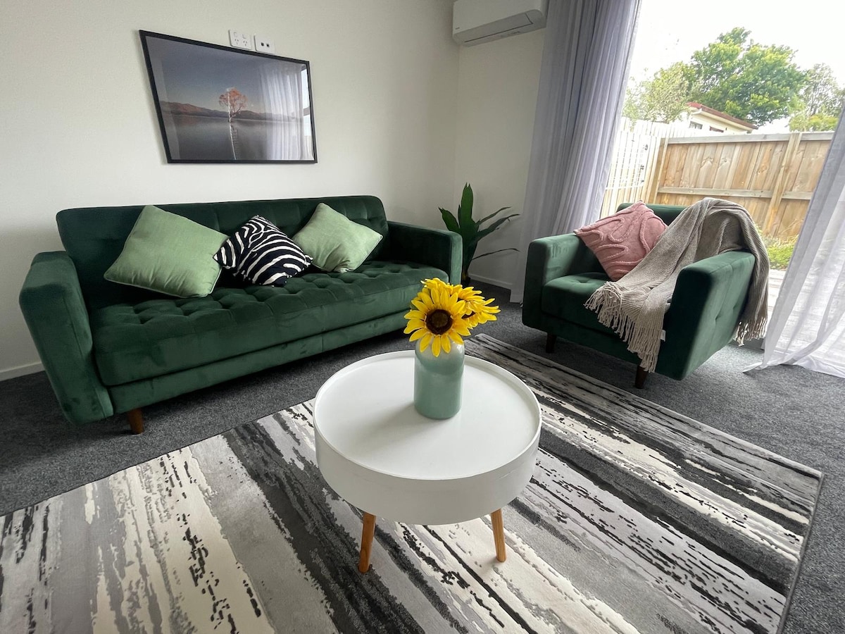 Nowoczesna konwersja studia. Prywatna łazienka i aneks kuchenny. Prywatny taras. Idealne miejsce na relaks. Bezpłatny parking na ulicy. Oddzielony od głównego domu z własnym wejściem. To jest Twoja własna przestrzeń i świetna baza wypadowa do zwiedzania Christchurch. * 5 minut - lotnisko * 15 minut – centrum miasta * Podstawowe śniadanie wliczone * Kawa Nespresso * Klimatyzacja/pompa ciepła * TV z Netflix * Szybkie Wi-Fi * Skrytka całodobowa * Zniżki na wiele nocy * Miejsce przyjazne dla zwierząt * Produkty łazienkowe Ecostore