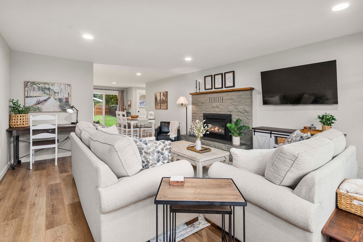 Atmosfera gospodarstwa, blisko wszystkiego w centrum Puyallup! W odległości spaceru od terenów targowych, 4 minuty od szpitala Good Samaritan. Odwiedź Pt. Ruston w Tacoma lub urocze centrum Sumner. Bardzo centralnie położony. Tylko 40 minut do Seattle! Poczujesz się jak w domu. Łóżko typu king size na górze z pełną kanapą, telewizorem Smart TV i dodatkową pościelą. Na dole są jeszcze 2 sypialnie. Mnóstwo bezpłatnych miejsc parkingowych. Długi podjazd i trochę miejsca z boku na kampera lub dodatkowe pojazdy. Zrelaksuj się przy ognisku!