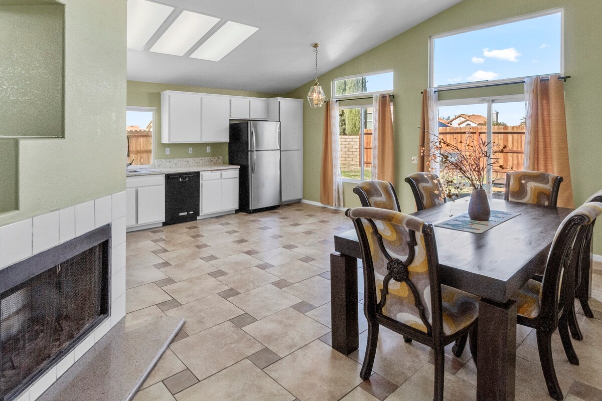 Witaj w naszym uroczym domu z 4 sypialniami i 2 łazienkami w Palmdale! Nasz przestronny dom, położony w spokojnej okolicy, może pomieścić do 8 osób. Ciesz się nowoczesnymi udogodnieniami, w tym pralką, suszarką i w pełni wyposażoną kuchnią. Bezpłatne Wi-Fi, przybory toaletowe i podstawowe wyposażenie. Twój idealny ośrodek wypoczynkowy w Palmdale już czeka! Idealne na dłuższe pobyty, dla ekip pracowniczych, podwykonawców lotniczych, pielęgniarek podróżnych i przeprowadzających się rodzin. Zniżki na rezerwacje miesięczne.
