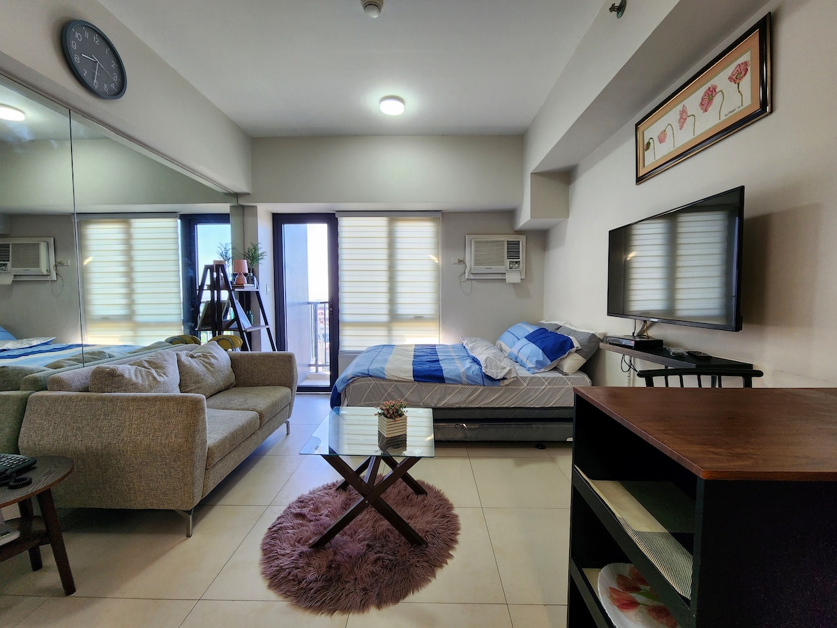 Nasze miejsce to w pełni umeblowana jednostka z 1 sypialnią, położona w Sundance Residences w samym centrum Cebu City. To ciepłe i przytulne miejsce wita i sprawia, że pobyt gościa jest niezapomniany i komfortowy. Nasze miejsce jest wyposażone w podstawowe udogodnienia zapewniające przyjemny pobyt, takie jak podgrzewacz wody pod prysznic, lodówka, kuchenka indukcyjna i czajnik, przybory do jedzenia i gotowania, urządzenie do gotowania ryżu, kuchenka mikrofalowa, dystrybutor wody z 1 galonem bezpłatnego napełniania. Zapewniamy również bezprzewodowy Internet Wi-Fi z 85 kanałami telewizyjnymi.