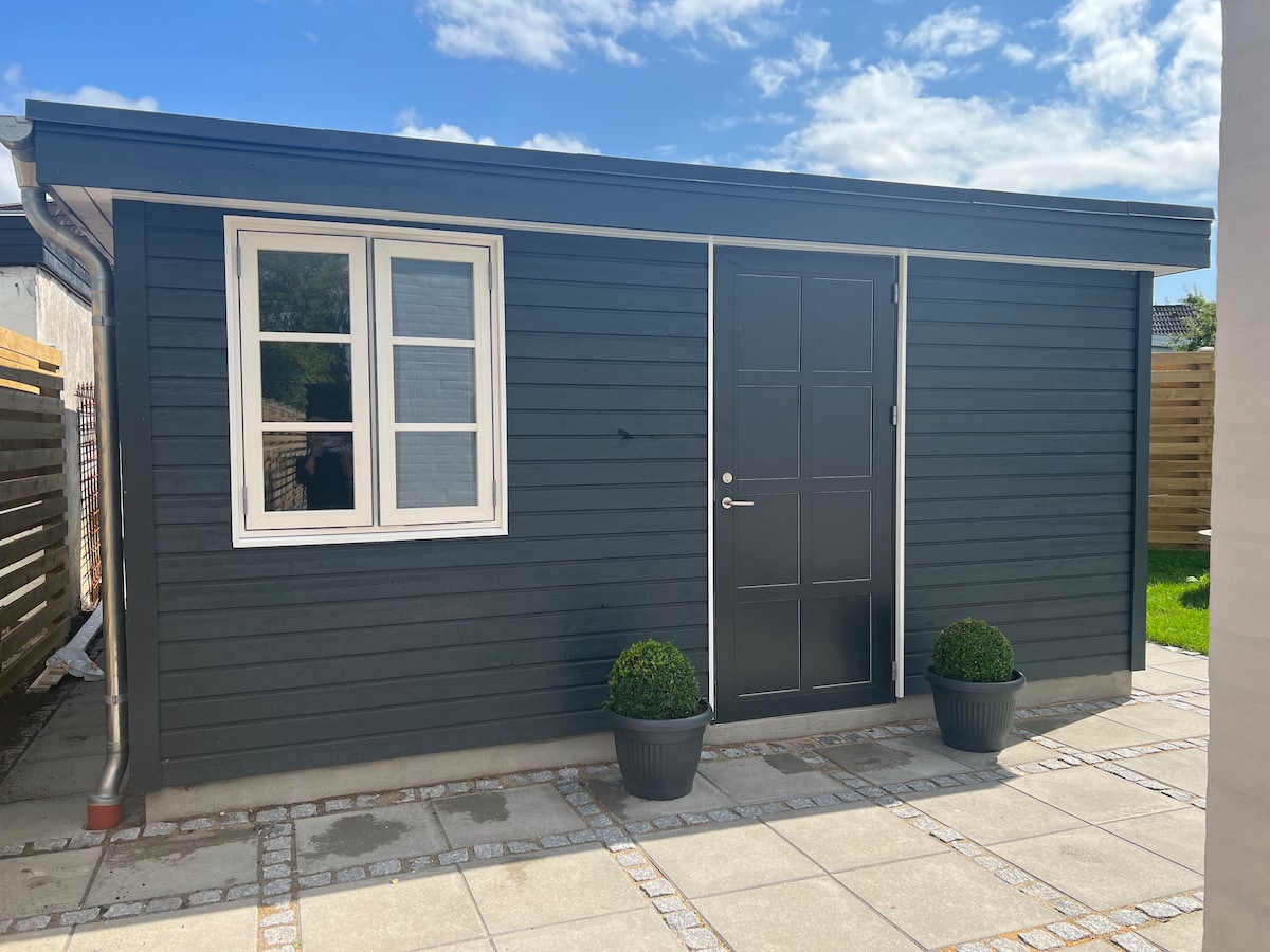 Zupełnie nowy, ogrzewany domek gościnny. To jak hotel – tylko ciszej. Pensjonat składa się z połączonego salonu z telewizorem (chromecast) i sypialni z oddzielną łazienką. W pobliżu centrum Kopenhagi z atrakcjami Kopenhagi w odległości rowerowej i szeregiem tras autobusowych w odległości spaceru. Jednocześnie tylko 4 km od lotniska w Kopenhadze, co czyni go idealną bazą zarówno dla turystów, jak i osób podróżujących służbowo. Położony w spokojnej dzielnicy mieszkaniowej