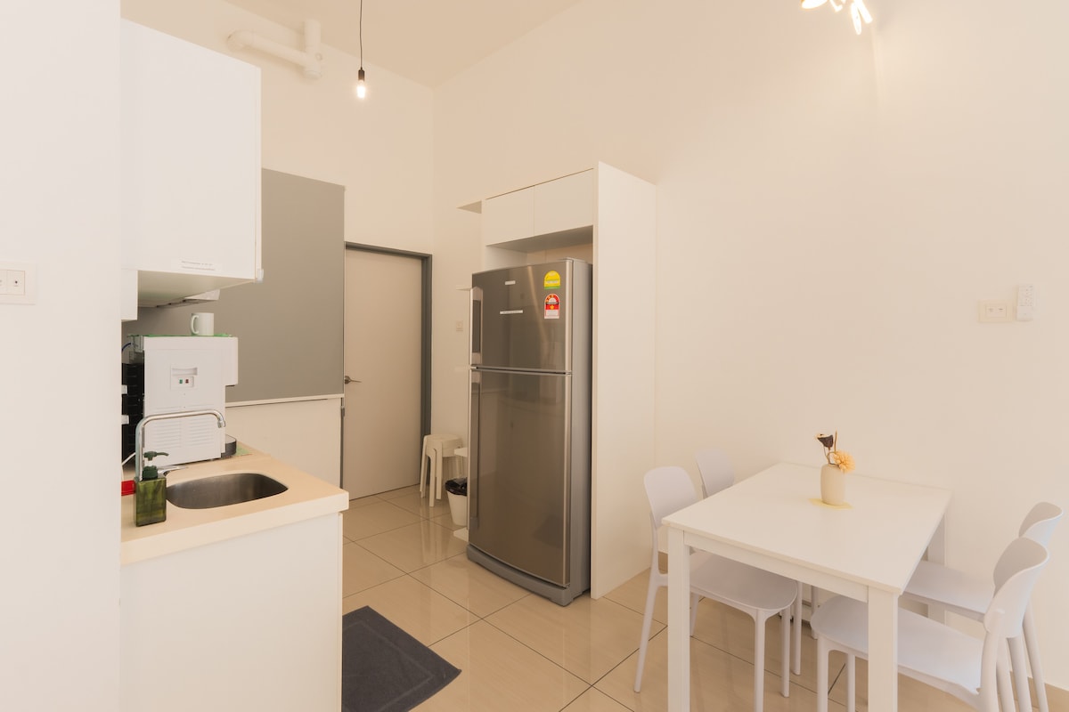 *NEW* DM me the word "New package" to enjoy 8% cashback. Escape to our stylish 2BR condo on the 33rd floor in Johor Bahru. This modern minimalist retreat offers stunning city skyline views and comfortably sleeps 6-7. Perfect for families or business travelers, it features an HD projector with Netflix, high-speed 5G Wi-Fi, and a well-equipped kitchen. Enjoy a unique urban getaway with resort-style amenities.