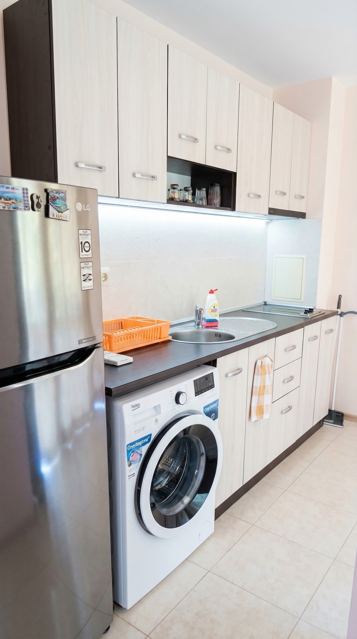 The flat is new and shiny. It is located next to the wonderful golden beach of Sunny Beach - 300 meters walking distance. The building is a new private complex with many facilities such as a swimming pool, a garden, a gym, a reception and a children playground. You have access to all of them. The apartment has all needed conditions for your holiday - fully equipped kitchen witch contains a dishwasher machine, an oven , hobs, a refrigerator, kitchen utensils . There is also a washing and a drying machine, a large bathroom. The balcony has a great view to the garden and the mountains. It is a perfect place for morning coffee. In front of the building are placed two supermarkets. There is a desk for touristic destination-tickets for Aquapark,taxy station, excursions, trip with horses.