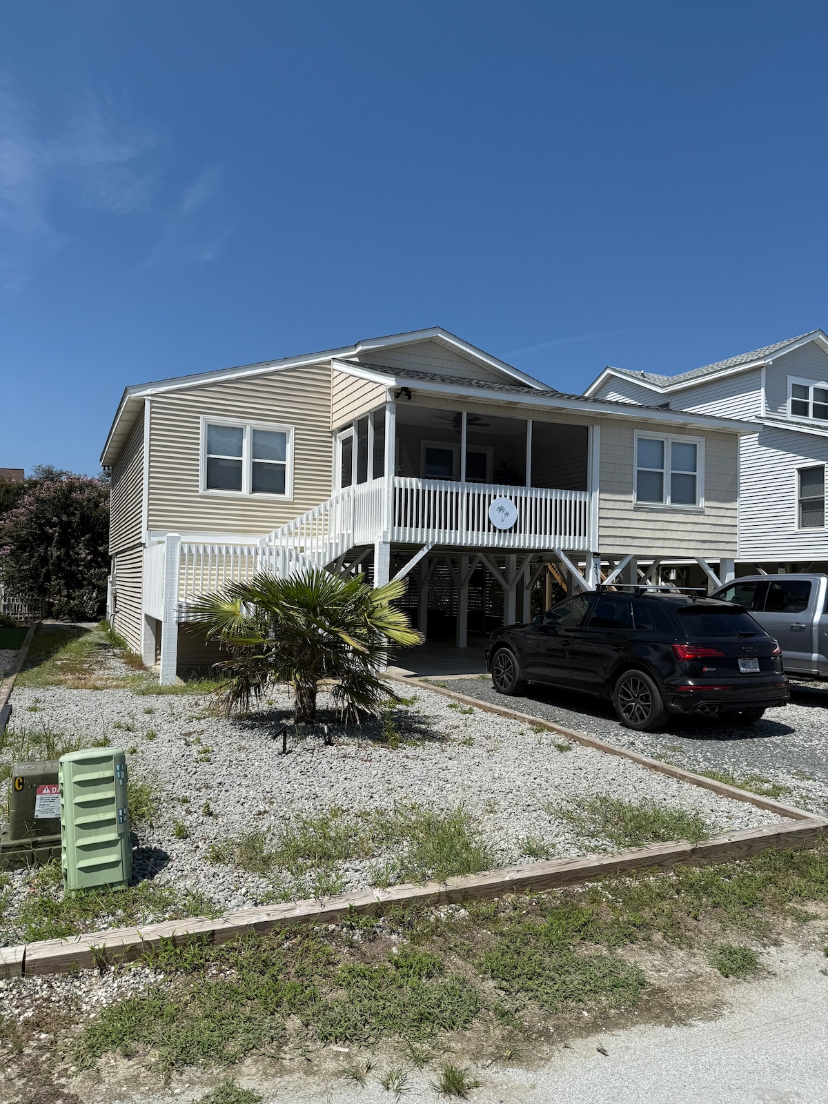 This beach house has everything you could want for your vacation. With 4 bedrooms and a loft, 2 bathrooms and an outdoor shower, and a screened in porch, everyone will be comfortable. It's a short walk to the beach with public access on our street, and one street over to the pier and island shops. Additionally, it is stocked with lots of games, bikes, beach gear and linens/towels, making your packing light. You'll have a great time making wonderful memories!
