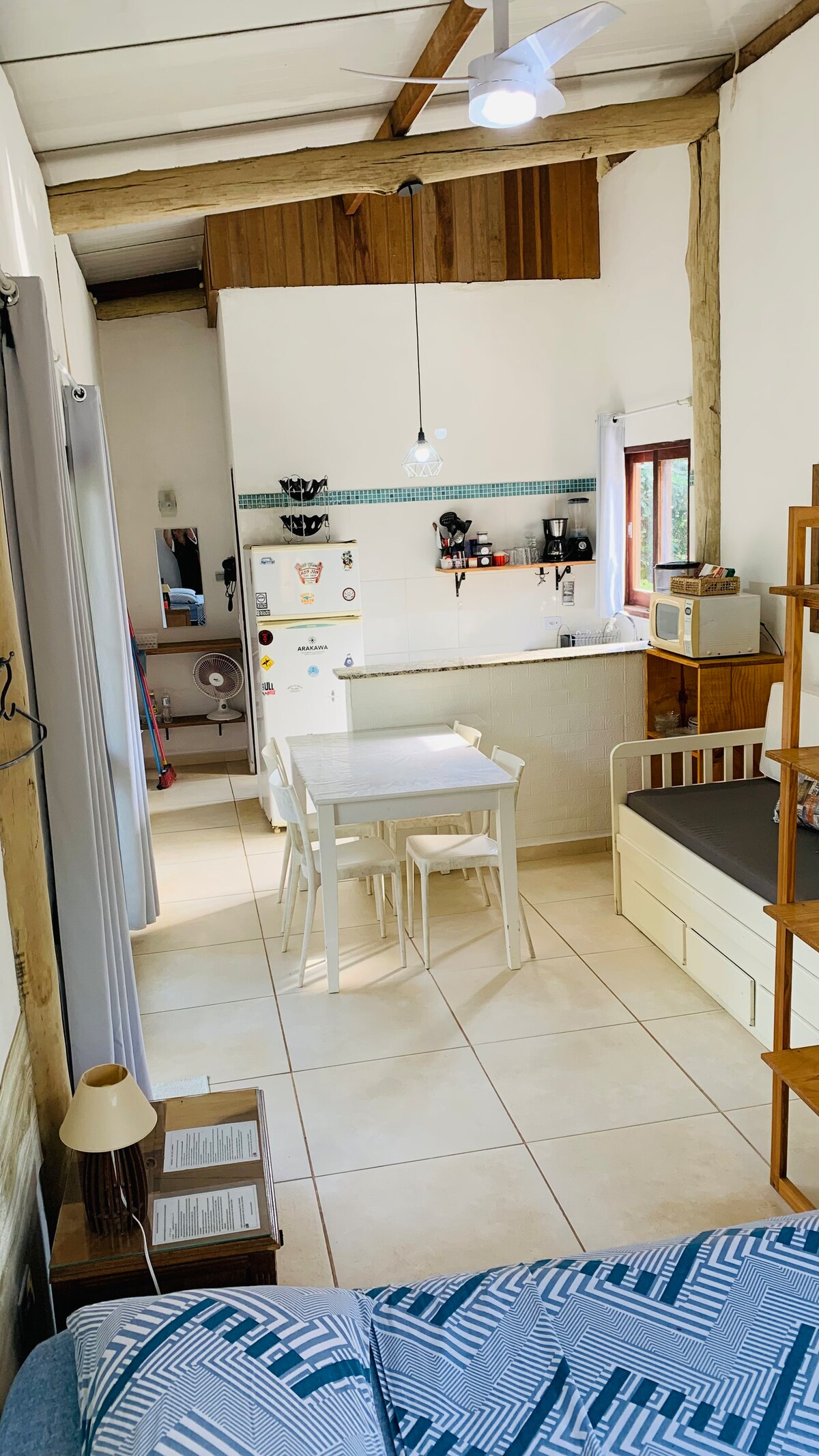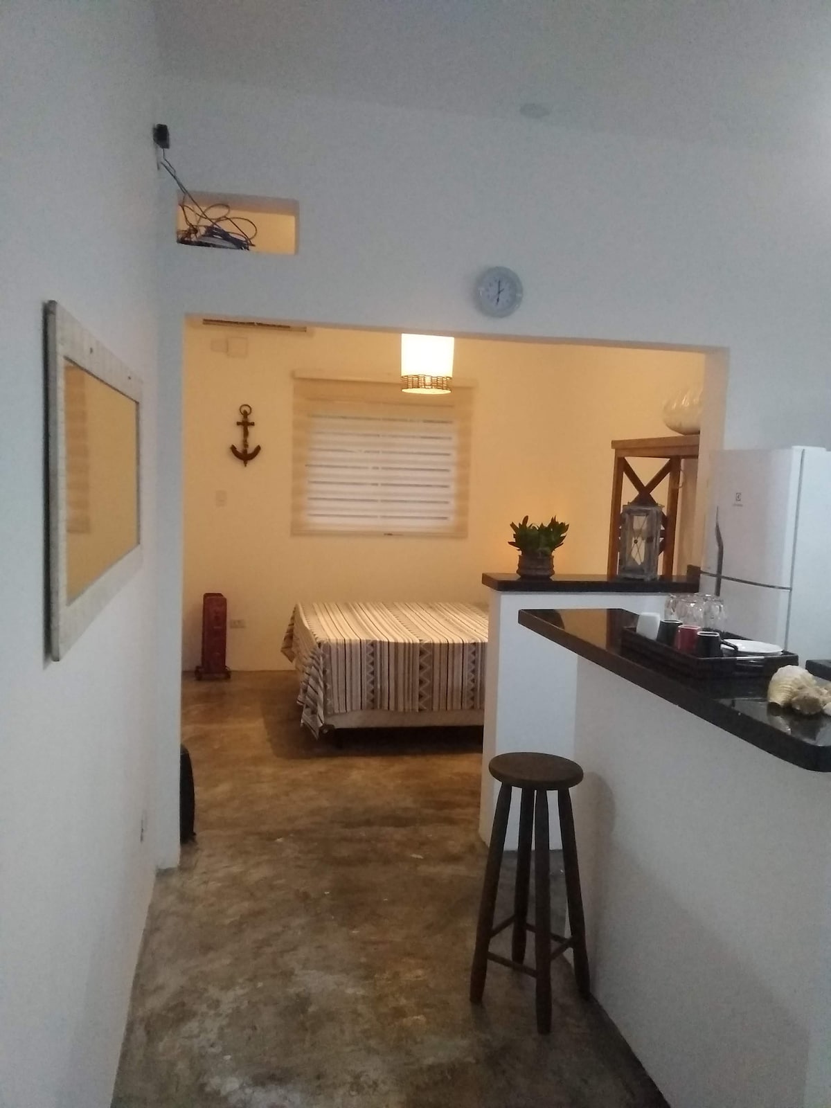 Kompletny zestaw dla pary na tyłach głównego domu z 1 niekrytym miejscem parkingowym, prywatną łazienką i prysznicem na zewnątrz. Oprócz 2 wentylatorów, 4-palnikowej kuchenki, minibaru i wszystkich przyborów kuchennych, jest tam 1 podwójne łóżko. Zapewniamy bezpłatną pościel i ręczniki, ale wymagane są ręczniki plażowe (ręczniki kąpielowe nie są dozwolone na plaży). Świetna lokalizacja: W pobliżu targowisk, apteki i stacji benzynowej, 600 metrów od plaży Lázaro i w pobliżu plaż Domingas Dias i Sununga.