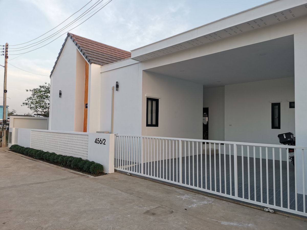 Podróżuj z całą rodziną, zatrzymując się w samym sercu miasta. Ciesz się nowo odnowionym domem w stylu minimalistycznym. Domowy. Pobyt w samym sercu Buriram. W pobliżu Chang Arena, światowej klasy tor wyścigowy. Tylko 3 minuty do centrów handlowych, targowisk. Jest tu kuchnia z możliwością gotowania na ciepło. To jak mieszkanie we własnym domu.