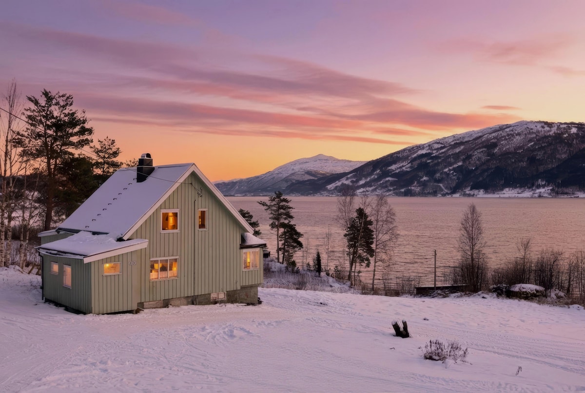 Discover the enchanting allure of Todalsøra. This idyllic retreat offers a harmonious blend of traditional Norwegian marine design and modern amenities, creating a sanctuary for those seeking tranquility or adventure amidst nature’s grandeur. Wake up to awe-inspiring views of towering mountains and serene fjords, and unwind in a space that caters to your every need, with a fully equipped kitchen, cozy living area, high-speed internet, and more.