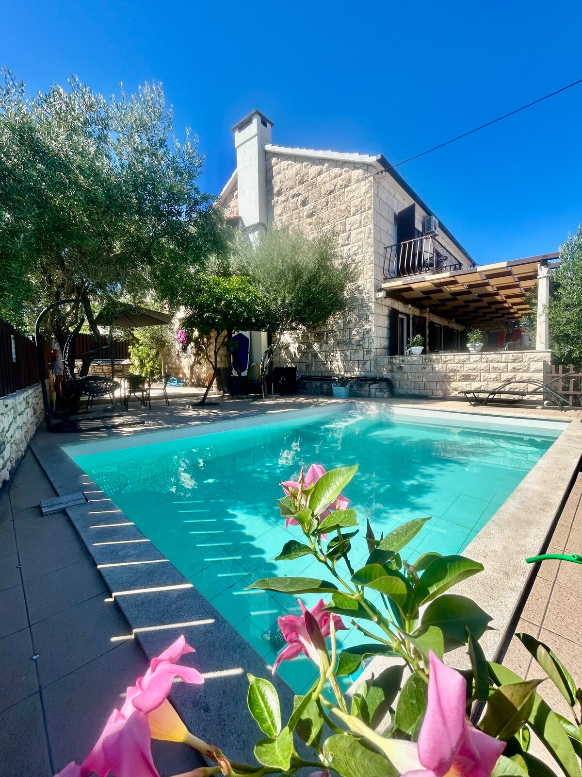 Szukasz spokoju i przyrody? To miejsce, w którym możesz cieszyć się spokojem i przyrodą w domu z basenem. * duży prywatny basen (32 m2), grill, parking,ogród * jedna sypialnia z podwójnymi łóżkami (180x200cm) * jedna sypialnia z jednym łóżkiem (90x190cm) * jedna sypialnia z dwoma pojedynczymi łóżkami (90x190cm) * dwie łazienki z prysznicem * Toaleta z praniem * jadalnia + w pełni wyposażona kuchnia * jadalnia z dostępem do basenu * duży taras z widokiem na basen i morze * Wi-Fi, pościel, ręczniki