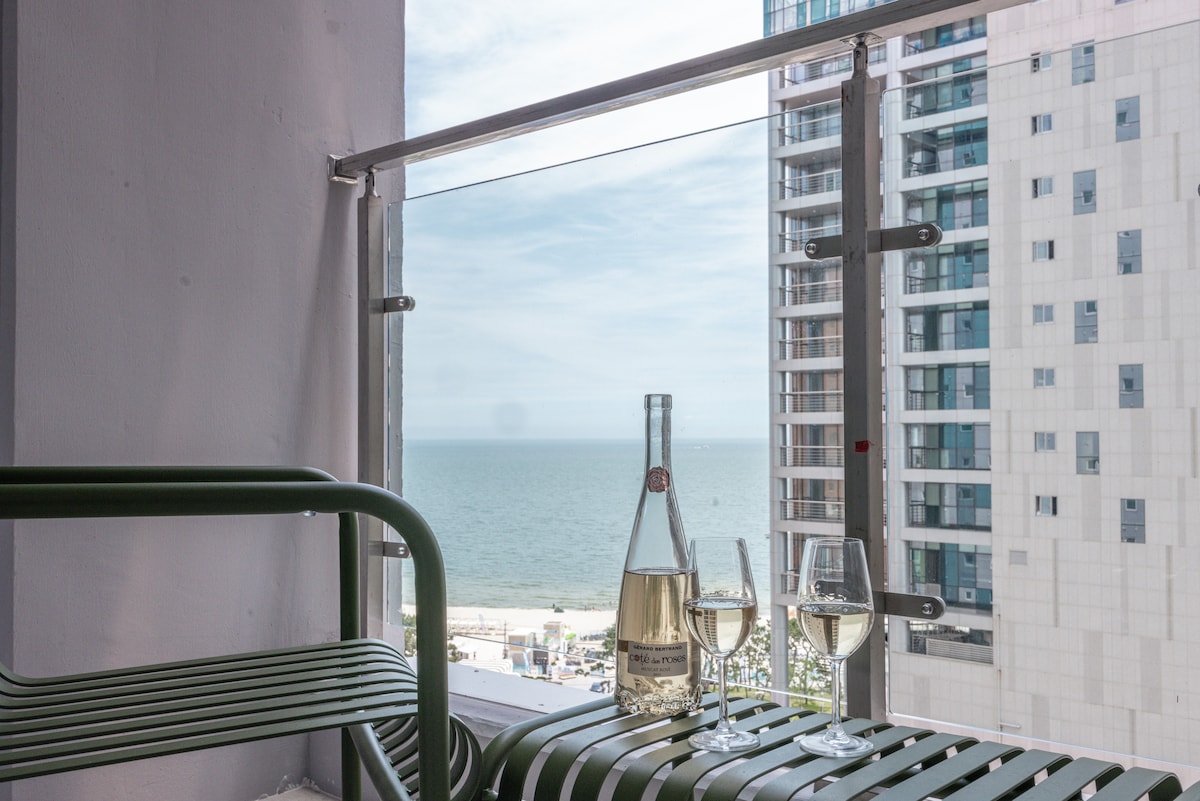 NOWOŚĆ Haeundae|Panoramiczny widok na ocean z 26. piętra|3 minuty od plaży|Taras|3 łóżka dla 2-4 osób|Możliwość korzystania z basenu|Możliwość samodzielnego przygotowywania posiłków