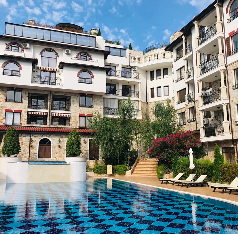 🌴 Zrelaksuj się przy basenie w naszym słonecznym apartamencie przy plaży Witaj w idealnym miejscu na wakacje w Słonecznym Brzegu! Nasze nowoczesne mieszkanie na parterze oferuje bezpośredni dostęp do basenu VIP, łącząc komfort, wygodę i relaks w stylu kurortu – idealne dla par, rodzin lub przyjaciół. Apartament znajduje się w popularnym Harmony Suites 16 Grand Resort. Możesz tu cieszyć się spokojnym otoczeniem, będąc jednocześnie blisko wszystkiego, co ma do zaoferowania Sunny Beach.
