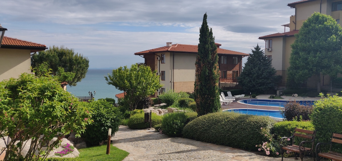 Witamy w naszym stylowym apartamencie położonym pomiędzy Sveti Vlas i Sunny Beach, zaledwie 5 minut spacerem od najpiękniejszej i najspokojniejszej plaży w okolicy. W naszym apartamencie znajdują się 2 sypialnie (jedna jest przejściowa), salon, kuchnia i taras. Wszystkie pokoje wyposażone są w klimatyzację. Kompleks znajduje się w okolicy słynącej z terapeutycznych prądów powietrza i ma wszystko, czego potrzebujesz: - Wi-Fi - Basen - Parking - ogród - supermarket - Transport publiczny – Blisko restauracji - Atrakcje na plaży