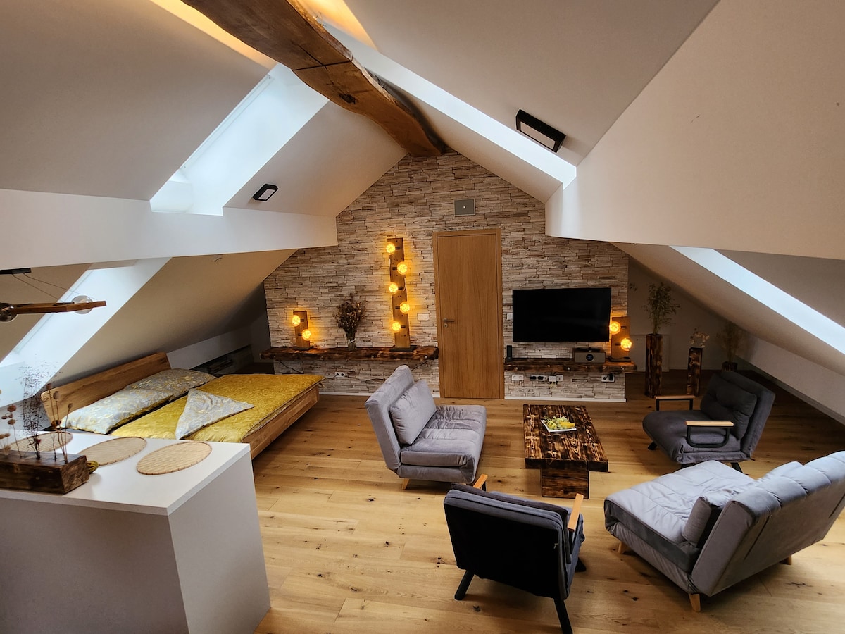Apartament Hajnej to przytulne i luksusowo wyposażone zakwaterowanie w domku górskim o powierzchni 26 m². Oferuje w pełni wyposażony aneks kuchenny z ekspresem do kawy Nespresso i piekarnikiem, a także łazienkę z prysznicem. W sypialni znajdują się sprężynowe materace medyczne + 1 pełne dodatkowe łóżko i telewizor 4K (Netflix, YouTube). Dzięki swojej lokalizacji łączy spokój i autentyczną górską atmosferę z dostępem do centrum Pec, Relax Park i kolejki linowej do Sněžki. Idealne miejsce na relaksujące i aktywne wakacje w górach olbrzymich.