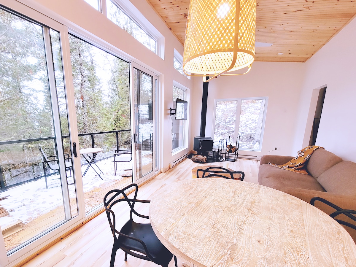 Położony nad jeziorem, McGregor to piękny domek w kształcie litery A, idealny na odpoczynek od miasta, a jednocześnie doskonale usytuowany, aby umożliwić Ci korzystanie ze wszystkiego, co ma do zaoferowania region turystyczny Gatineau/Ottawa. Nasze minidomki są wyposażone w spa, które pozwala się zrelaksować, lub w biuro, które umożliwia pracę zdalną. Będą one miejscem, do którego będziesz chciał wrócić, ponieważ poczujesz się tam jak w domu.