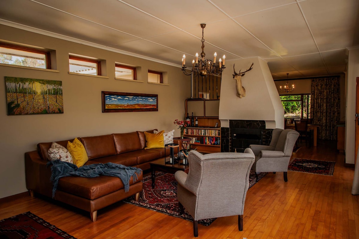 A family-friendly studio located next to the river in one of Swellendam's residential neighbourhoods. The studio boasts magnificent views of the garden and an enormous rubber tree, creating a tranquil experience. You’ll have high-speed wifi and solar power, perfect for remote working. Want a not-so-in-town feel? Then this is the place for you. The studio is located a mere 5 min walk to the nearest supermarket/midtown and a 13 min walk to old town with quaint restaurants, shops and cafés.