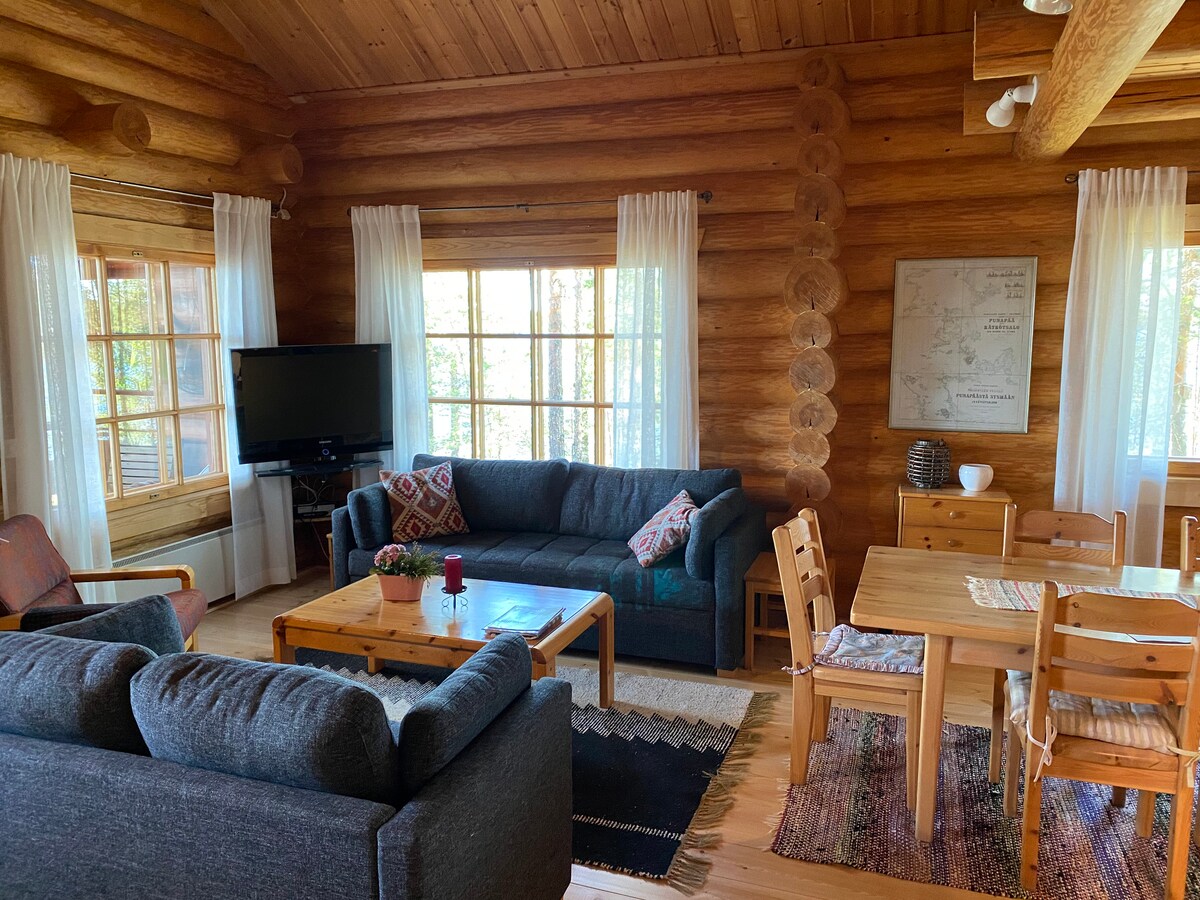 Odwiedź nas na wsi, w małej wiosce. Ten dobrze wyposażony domek z sauną to idealne miejsce na odpoczynek od zgiełku miasta. Latem w okolicy panuje wspaniała atmosfera – restauracja Wonkamies i kawiarnia w porcie są tuż obok. Całkowicie odnowiony domek z bali łączy w sobie tradycyjną atmosferę z nowoczesnymi udogodnieniami. Jako dodatkowa usługa dostępna jest również duża wanna. Krótka przejażdżka do ośrodka narciarskiego Himos, Parku Narodowego Isojärvi i muzeów Serlachius, tylko 30–65 km. Tylko 28 minut na pożądanie.