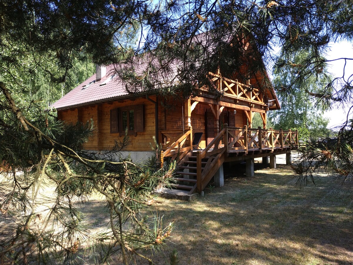 WAKACJE W BAJKOWYM DOMU!!!! Relaks na łonie natury. Samodzielny dom z bala w stylu kanadyjskim, otoczony lasem przy jeziorze pozwoli w pełni wypocząć napawając się śpiewem ptaków i wszelakich odgłosów natury przeszywających wszechobecną ciszę i spokój. Niektóre terminy obostrzone są minimalną liczbą dni, jeśli masz inne, krótsze terminy, proszę o kontakt Prosimy o nie organizowanie dużych eventów: kawalerskie, panieńskie, huczne uroczystości Dodatkowe rzeczy..zapytaj