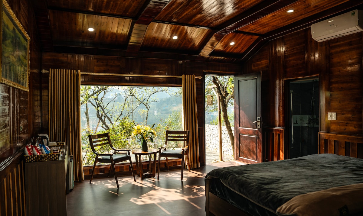 Witaj w pokoju Panorama, gdzie każdy wschód słońca maluje góry złotem. Ten jasny i elegancki pokój przeznaczony dla dwóch osób oferuje panoramiczne widoki na wzgórza, doliny i mgliste niebo Sapa – idealne dla par, które kochają oszałamiającą scenerię i spokojne poranki.