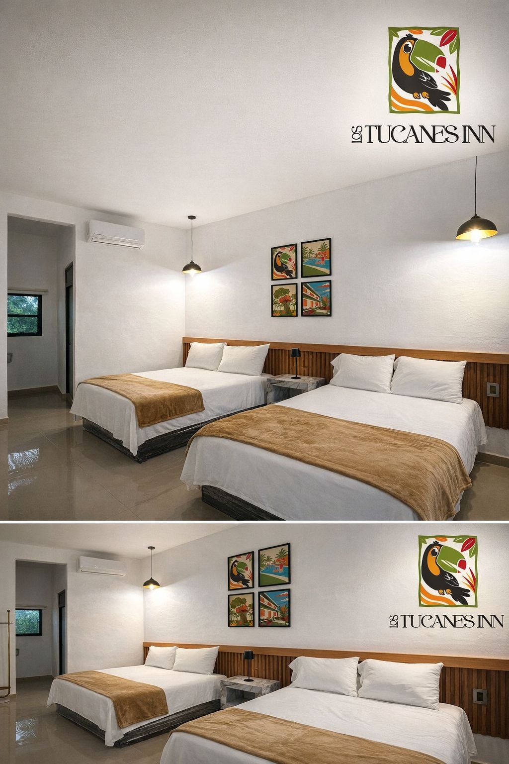 Nasz pokój z dwoma podwójnymi łóżkami jest idealny do współdzielenia, oferując wygodną i funkcjonalną przestrzeń. Wyposażony w klimatyzację, Wi-Fi, telewizor i prywatną łazienkę, zapewnia idealną atmosferę do odpoczynku po dniu pracy lub zwiedzania w Ciudad del Carmen