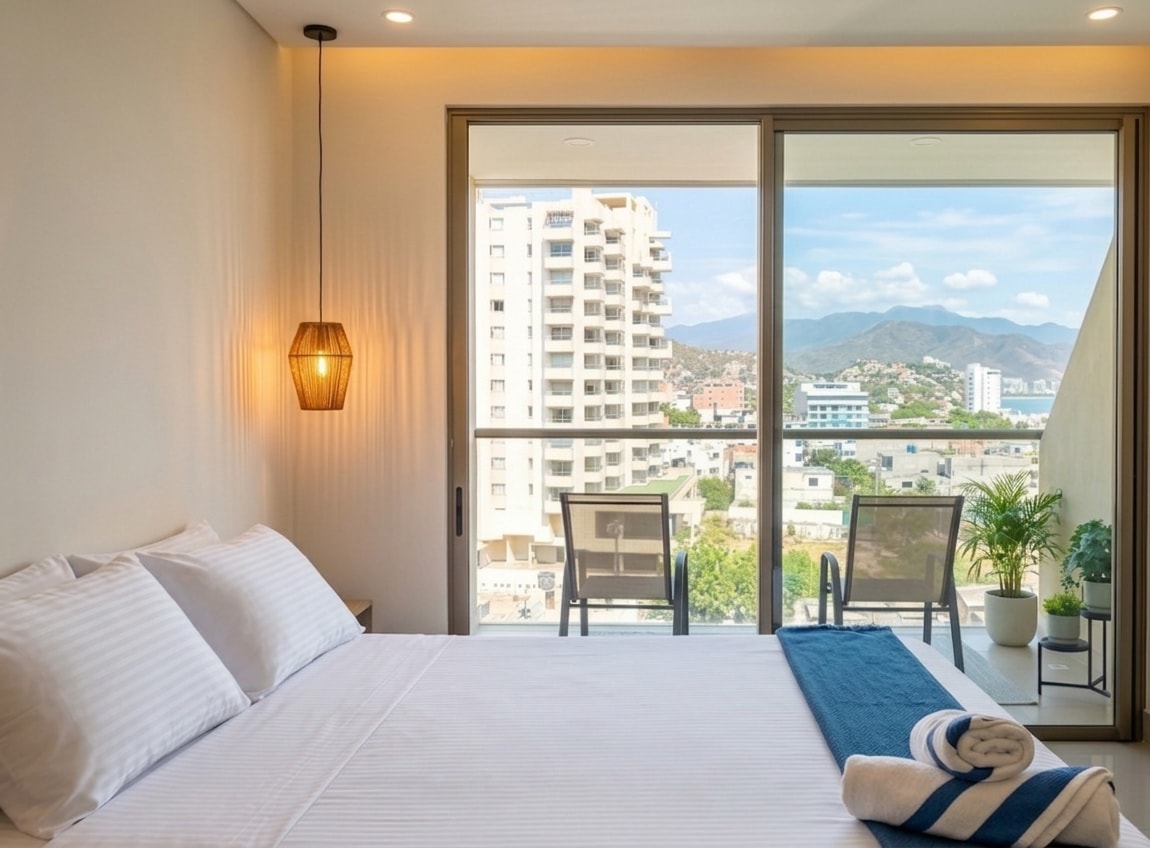Nowoczesna w centrum Santa Marta, zaledwie kilka kroków od najlepszych plaż i dzielnicy zakupowej. W budynku znajdują się części wspólne, takie jak basen, siłownia, restauracja i bary , najbliższa plaża znajduje się w odległości 200 metrów, a Ty będziesz w pobliżu wszystkiego, czego potrzebujesz. Nasza stawka obejmuje w dni Twojego pobytu śniadanie w formie bufetu, usługę sprzątania pokoju i korzystanie z bezpłatnych części wspólnych.