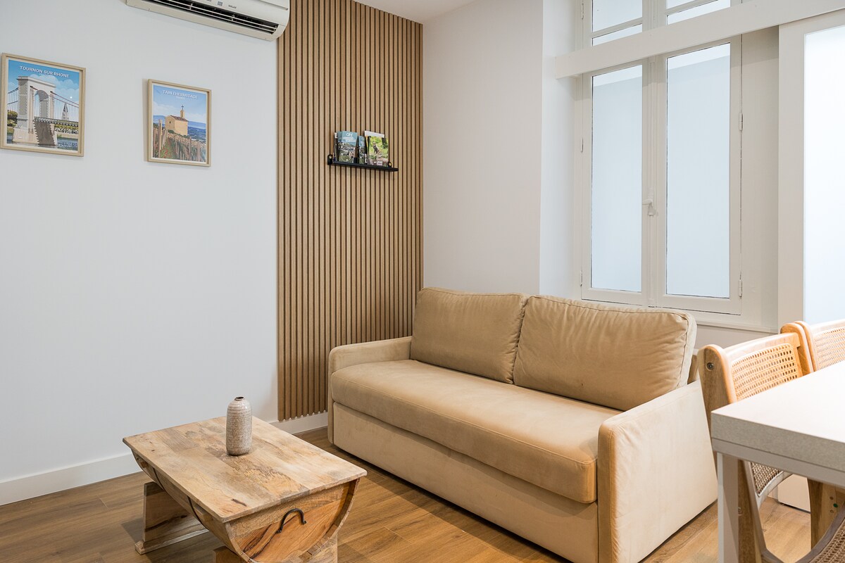 Idéalement situé au coeur de Tournon sur Rhône. Notre appartement cosy et chaleureux sera parfait pour profiter d'un séjour en Ardèche. Amoureux de nature, amateurs de vin, adeptes de sport ou en quête d'un séjour authentique, notre logement vous offre un pied à terre confortable dans lequel vous reposer. Vous aurez à disposition tous les équipements nécessaires à votre confort (machine à laver, local à vélo, etc), et serez à proximité immédiate des commerces, restaurants et activités.