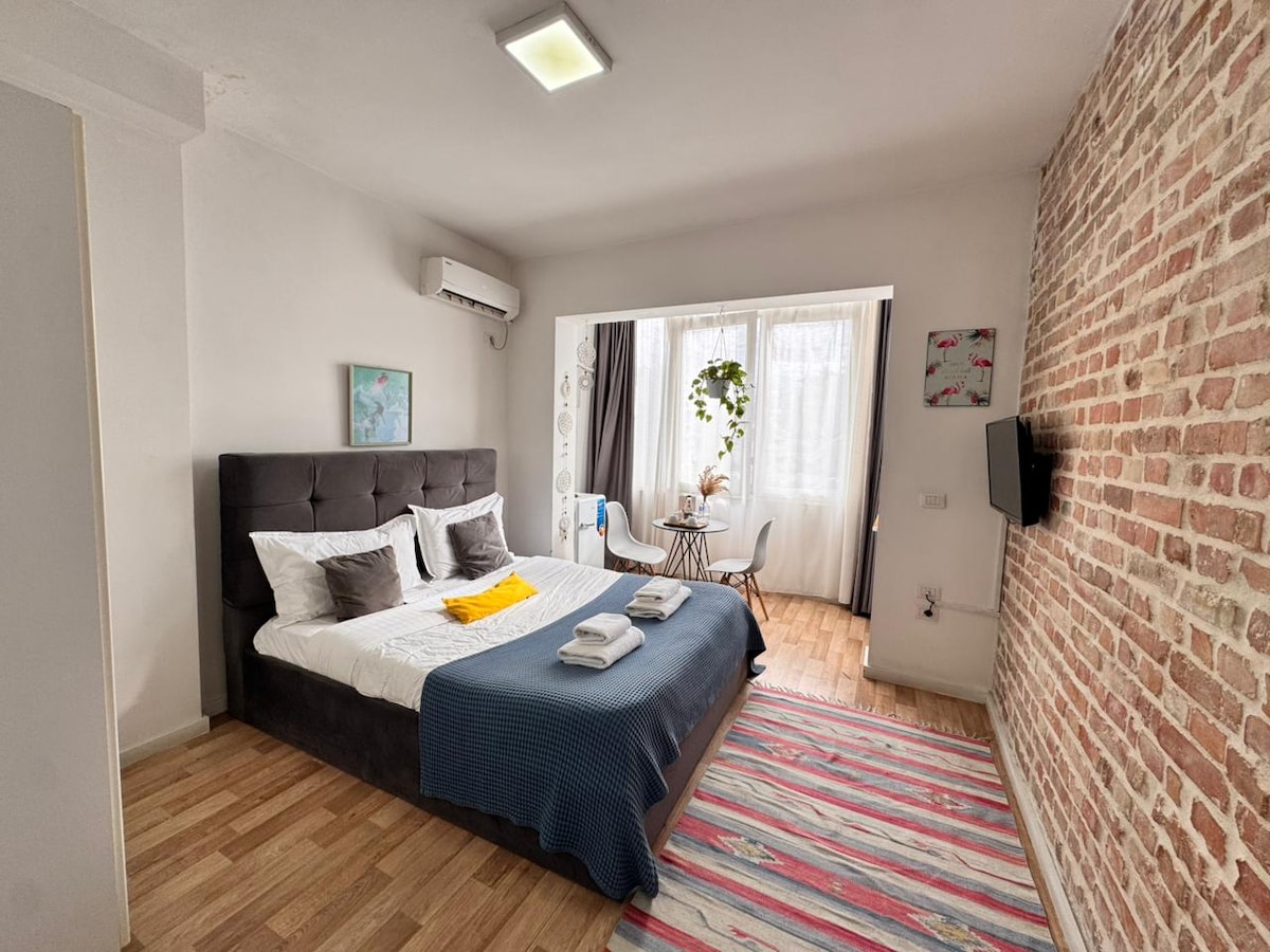 Nasze eleganckie studio to stylowe miejsce wypoczynku dla każdego. Zaledwie 2 minuty spacerem od centrum miasta, Bllok i głównego bulwaru, lokalizacja jest idealna. Nowoczesne wnętrze oferuje poczucie prostoty i komfortu dzięki dobrze wyposażonej kuchni, przytulnemu łóżku, nowoczesnej łazience, pralce i suszarce. Niezależnie od tego, czy odkrywasz Tiranę, czy spędzasz spokojną noc, to studio jest idealnym wyborem! Jedno z dwóch sąsiednich mieszkań na tym samym piętrze – sprawdź dostępność „Boutique Flat”. Odwiedź: airbnb.com/h/boutiquetr