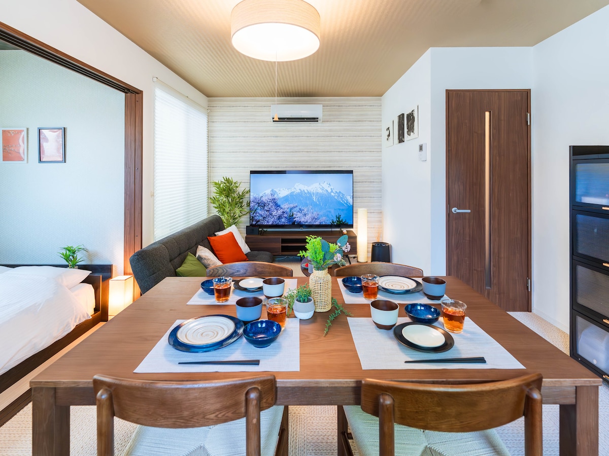 MOJA HISTORIA FAMILIAR 801 Miejsce dla maksymalnie 7 osób. Luksusowy pobyt na najwyższym piętrze apartamentu, idealny dla rodzin i grup. 2 minuty do centrum w samym sercu ☆Takamatsu Przed ☆ zameldowaniem dostępna jest usługa przechowania bagażu (po godzinie 12:00, bezpłatnie) Mieści ☆do 7 osób 2 podwójne łóżka 2 pojedyncze łóżka • 1 sofa *Goście sami przygotują pościel na sofę [Lokalizacja] 6 minut spacerem od stacji Kawaramachi 15 minut spacerem do japońskiego ogrodu "Ritsurin Park" Wygodny dostęp do Naoshima, Teshima, Shodoshima i innych stacji promowych W okolicy jest wiele restauracji Parking Na terenie apartamentu znajduje się jedno bezpłatne miejsce parkingowe. Pokoje Cały pokój w apartamencie Szybkie bezpłatne Wi-Fi Jest tam 65-calowy telewizor z dostępem do internetu. * YouTube/Netflix itp. (użyj go z własnym dokumentem tożsamości) Przybory kuchenne i przyprawy są dostępne do samodzielnego wyżywienia. [Atrakcja kulinarna] Bar Tabi... chwila relaksu po podróży Nicho... japońskie jedzenie w najlepszym wydaniu Ale Tan... najlepszy wołowy język da Ci energię na jutrzejszą podróż * Skontaktuj się bezpośrednio ze sklepem, ponieważ wymagane są rezerwacje.