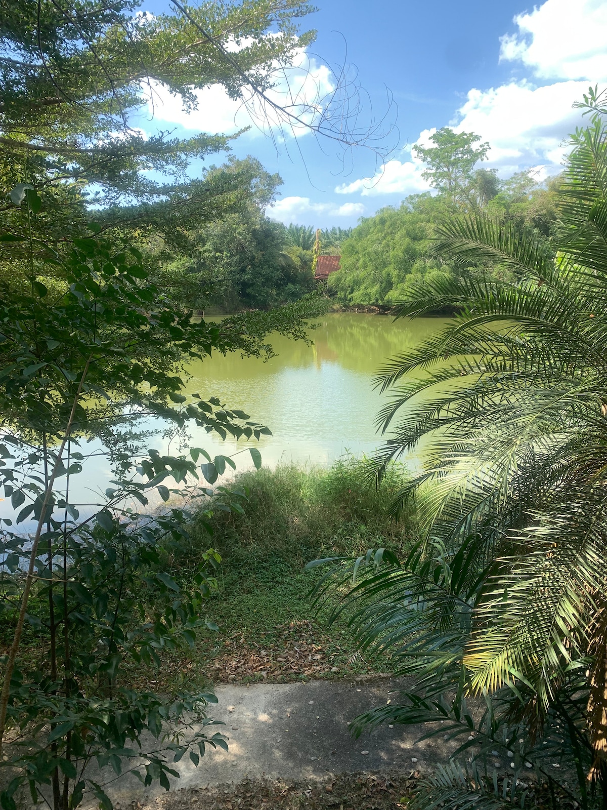 A beautiful little Appartement with kitchen, living room, bar counter, bedroom and Bathroom on a 8000sqm jungle land with its own creeks and lake to SUP, swim, fish or swing jUmp. Relax in nature. Enjoy absolute peacefulness. Explore the jungle track (only 1,800m) to the famous memory bar surf beach. 600m to The Board Factory. The largest and coolest RipCurl shop in Thailand, watch surfboards being made, enjoy vegan or any other food. An outside skate park and an indoor ramp for skate fun & Cafe