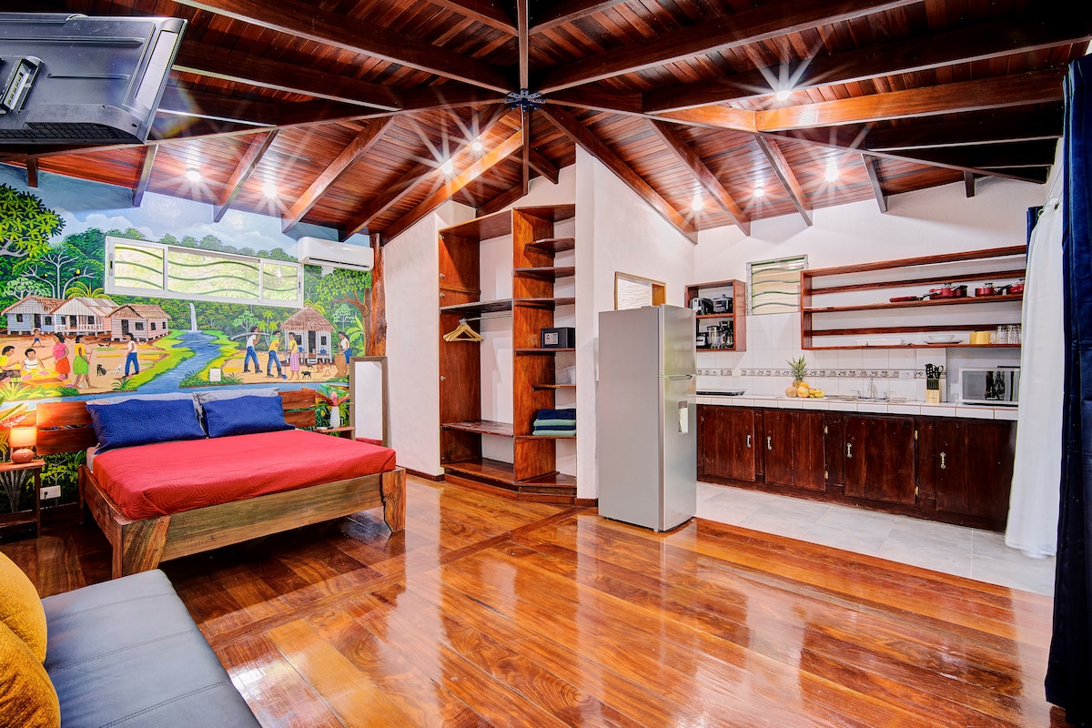 C A S I T A C I E L O @Casitas Rio Cocles Urocza kryjówka położona na łonie natury, ze spokojną rzeką na terenie nieruchomości i rowerami kolejkowymi dla łatwego zwiedzania. Zaledwie kilka minut drogi od najlepszych plaż, restauracji i przygód Puerto Viejo. Prosta, stylowa i zaprojektowana z myślą o czystym relaksie - Twoja idealna baza wypadowa na niezapomniany pobyt. Niezależnie od tego, czy zostajesz w domu, wychodzisz, czy robisz jedno i drugie, w tym casita chodzi o wyluzowaną atmosferę i bezproblemowe życie.